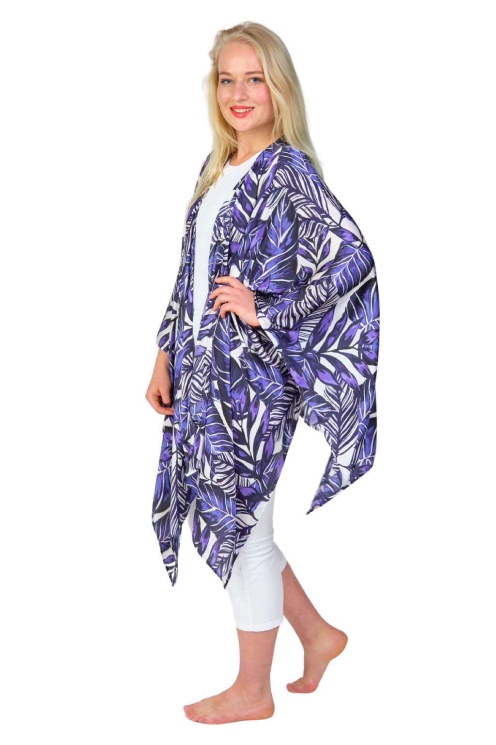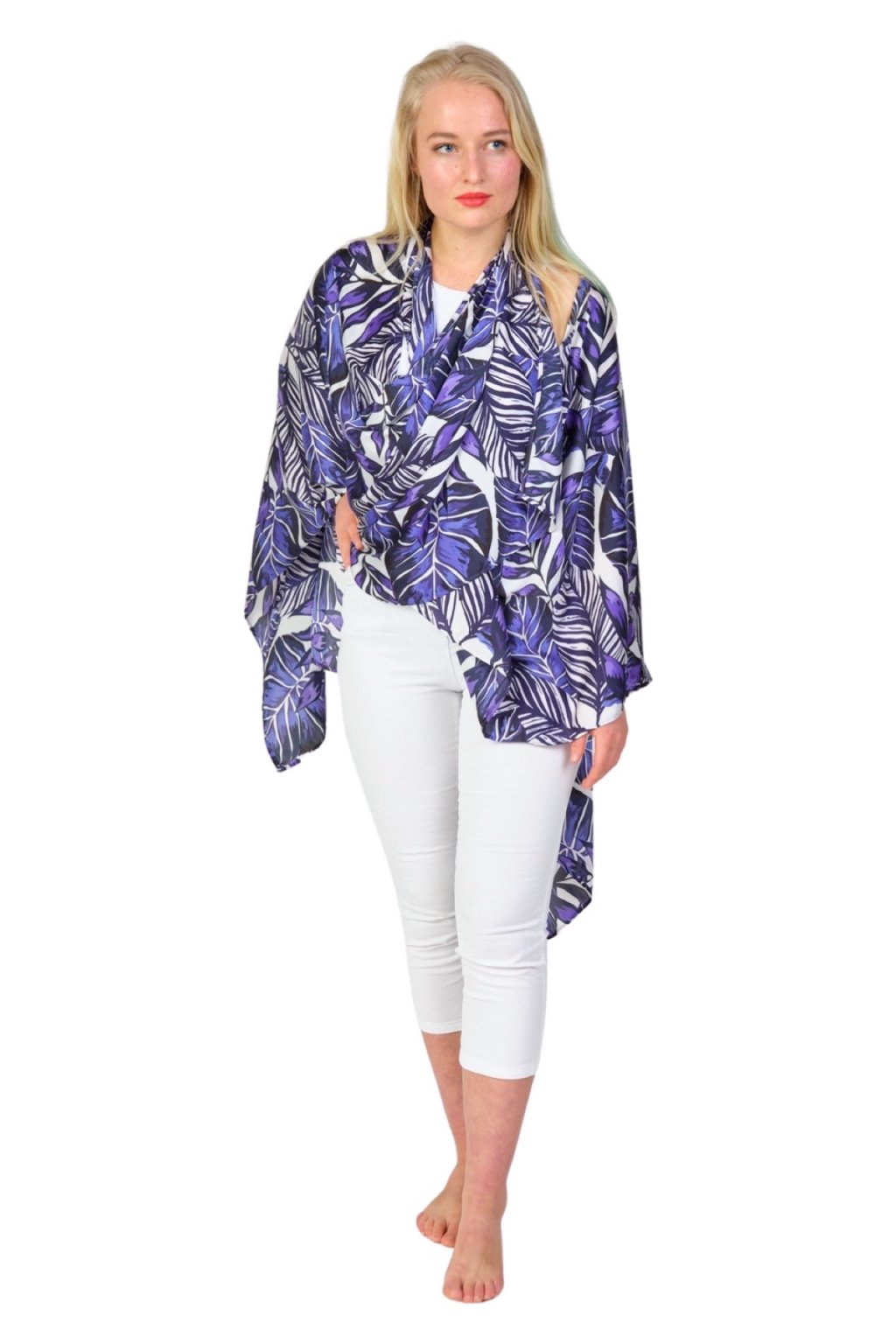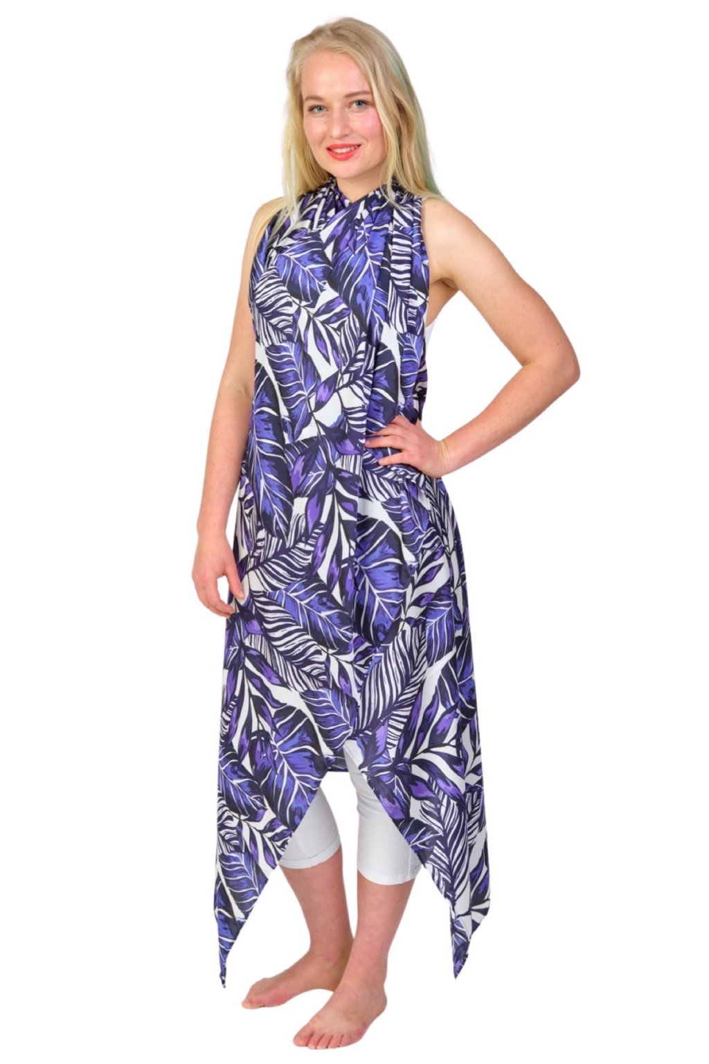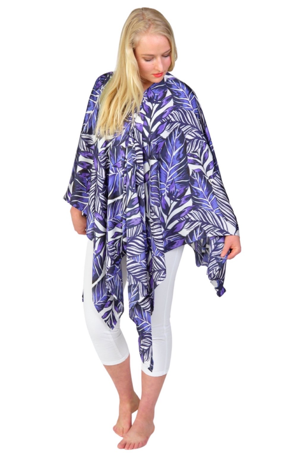 3v1 pléd Monstera Purple Luxusní splývavý magnetkový pléd / šaty / halenka