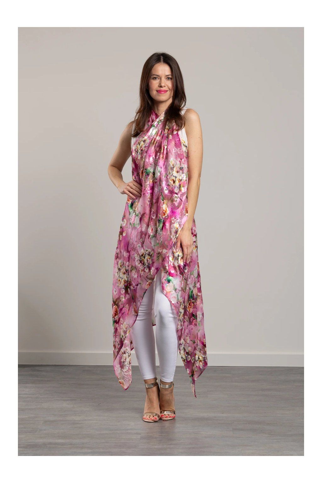 3v1 pléd Isabelle Pink Garden Luxusní hedvábný magnetkový pléd / šaty / halenka