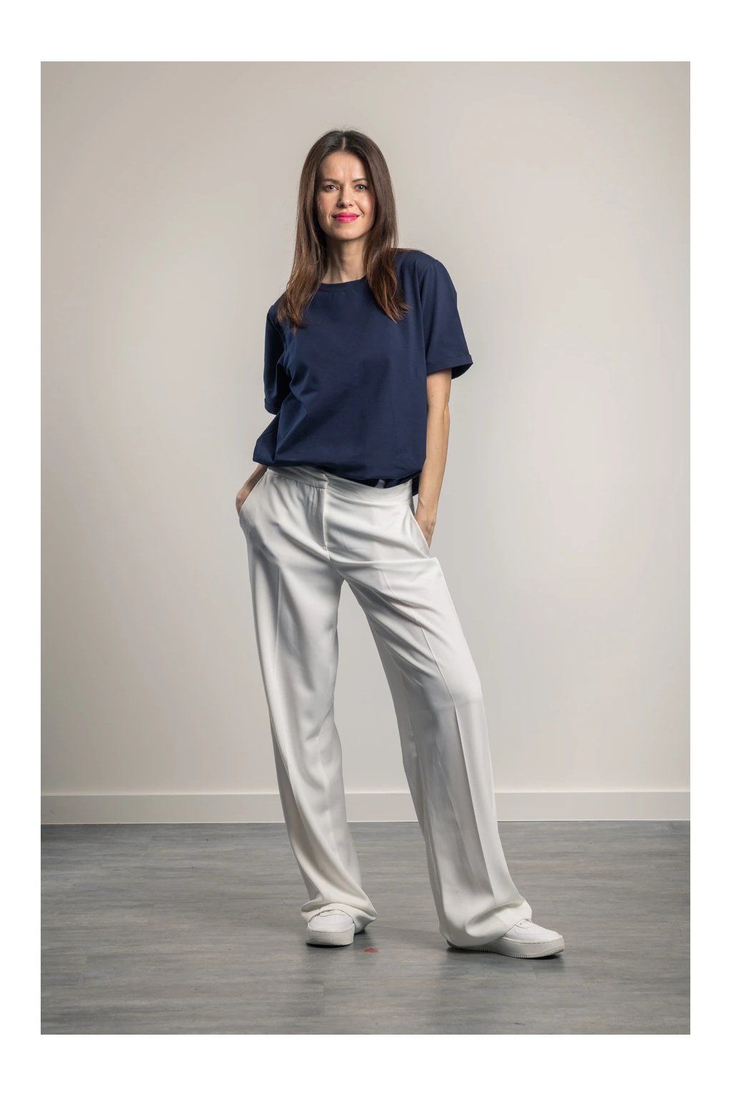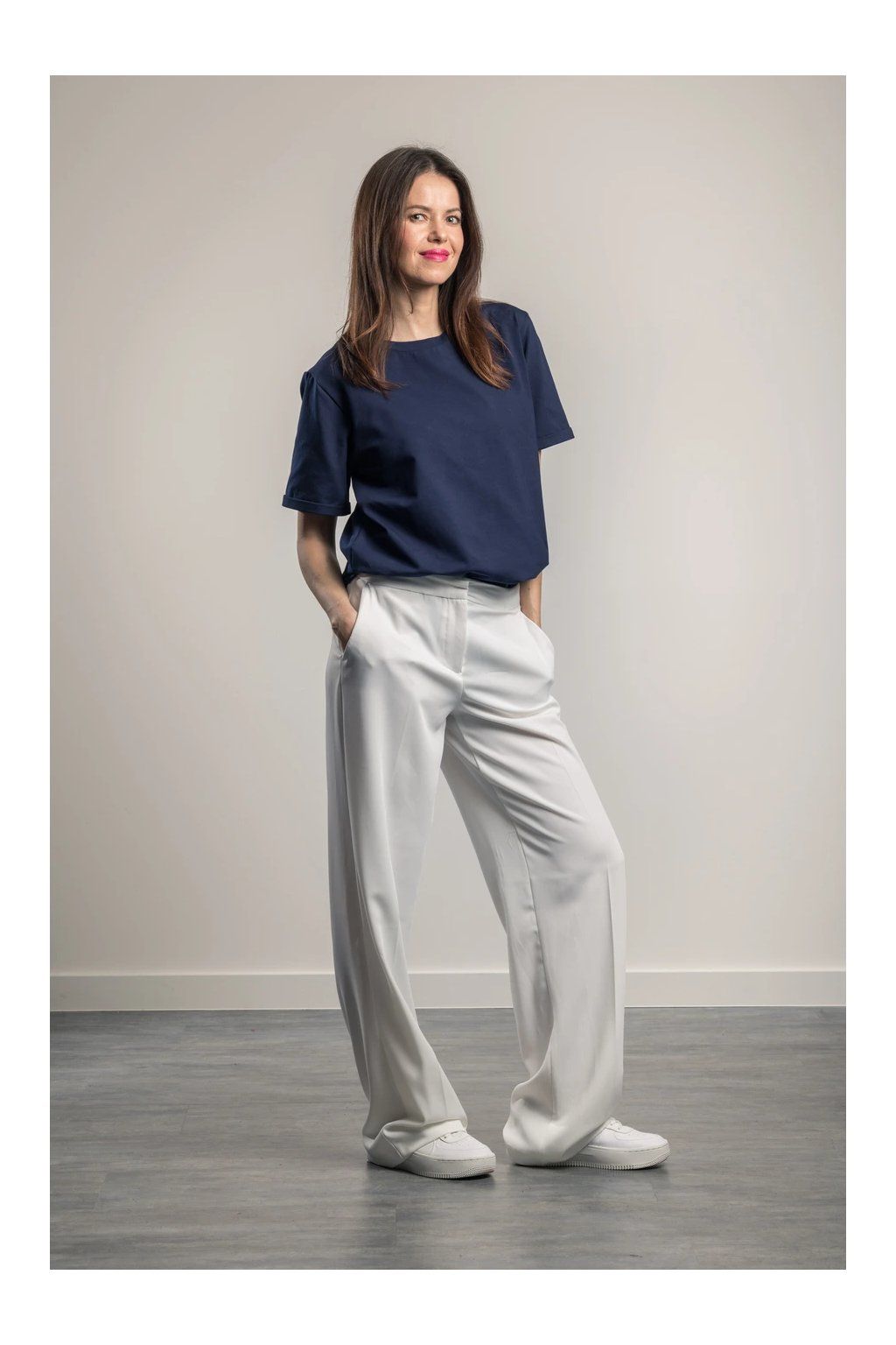 Bavlněné tričko Brisa Navy Blue Propracované tričko z bavlny s elastanem
