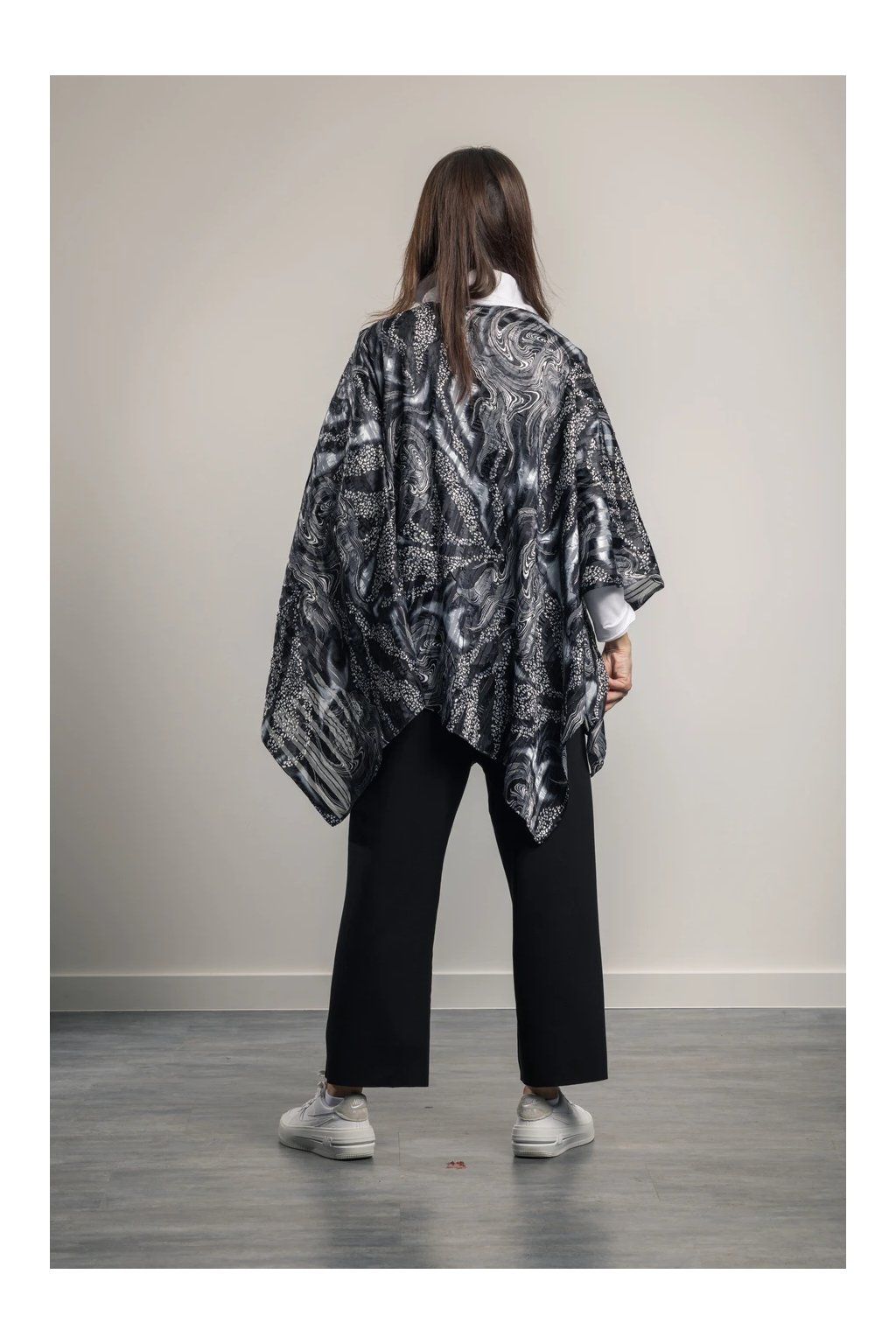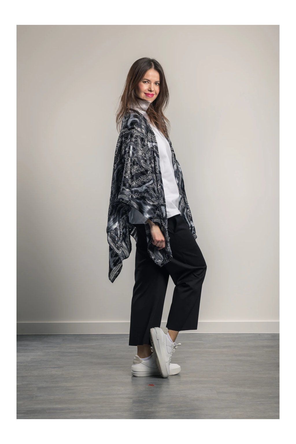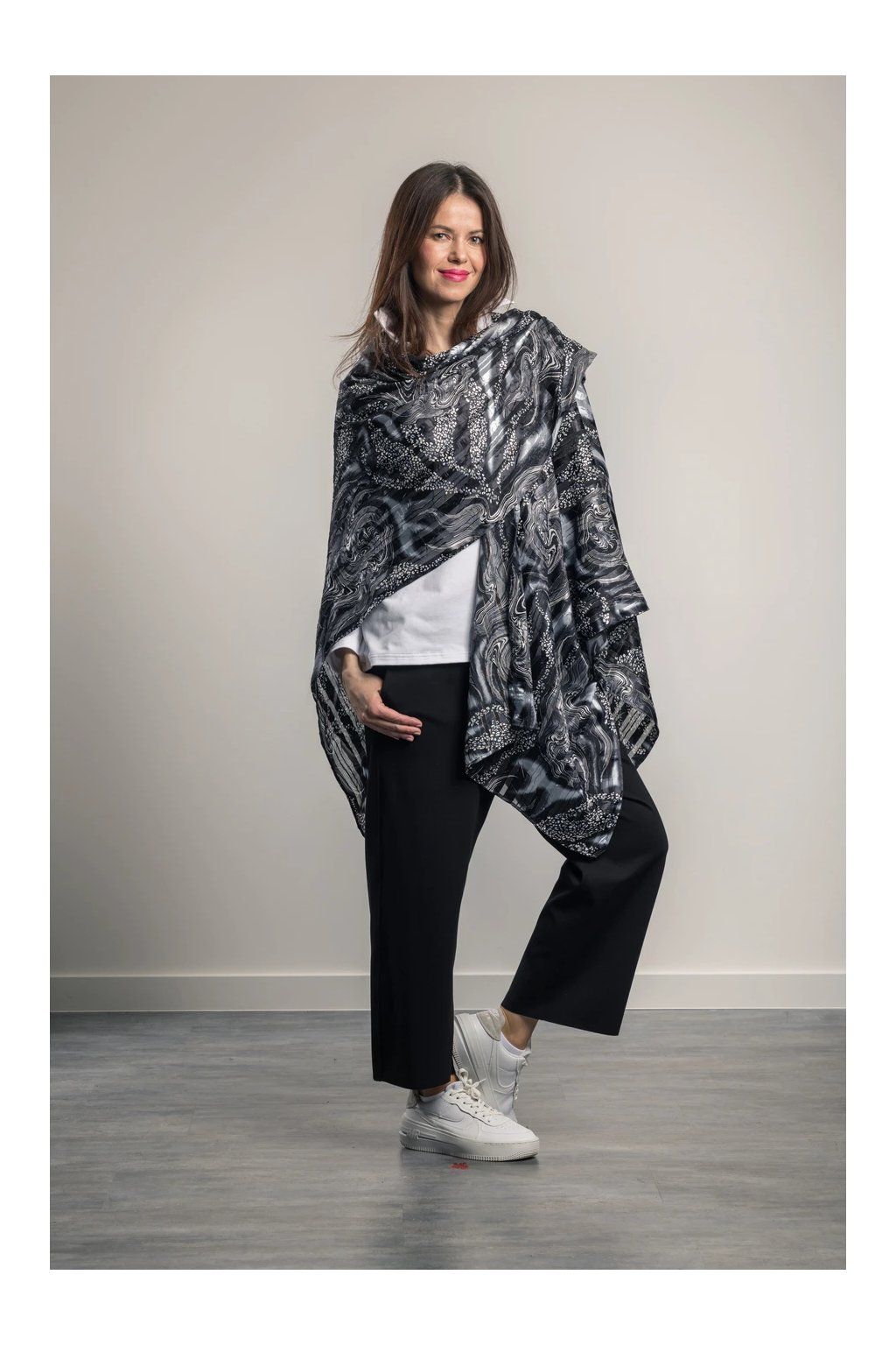 Eleganter, luftiger Plaid mit langen Enden, die die Figur verlängern. Er eignet sich für Sommerkleidung und Badebekleidung. Knitterfreies Material. Trocknet schnell.