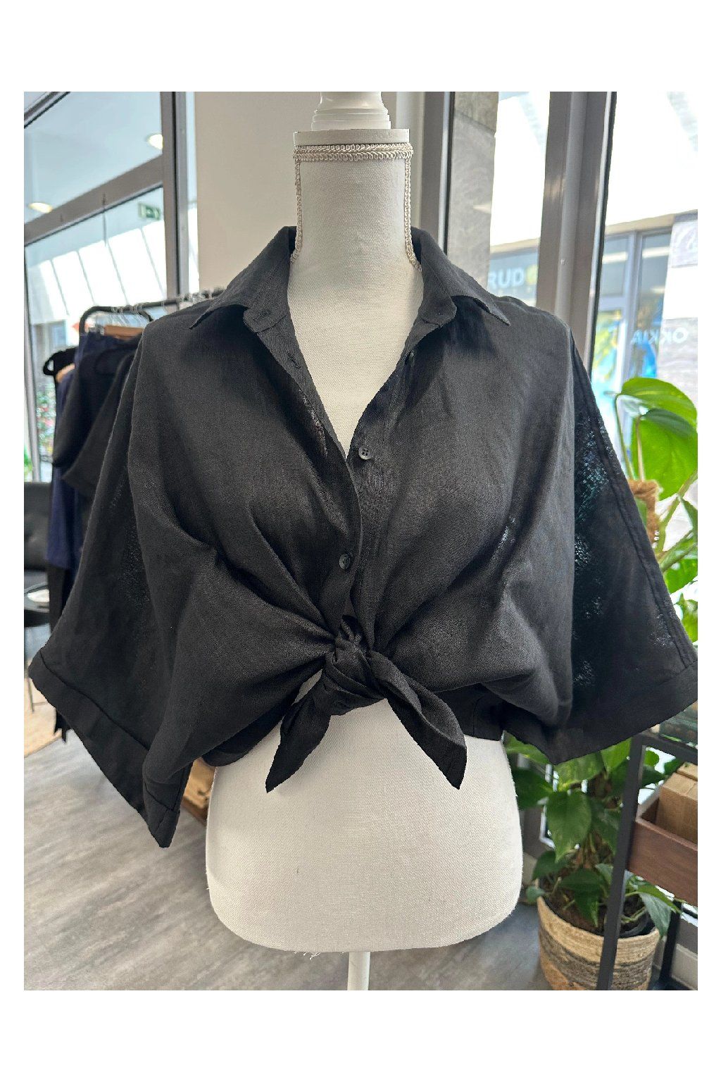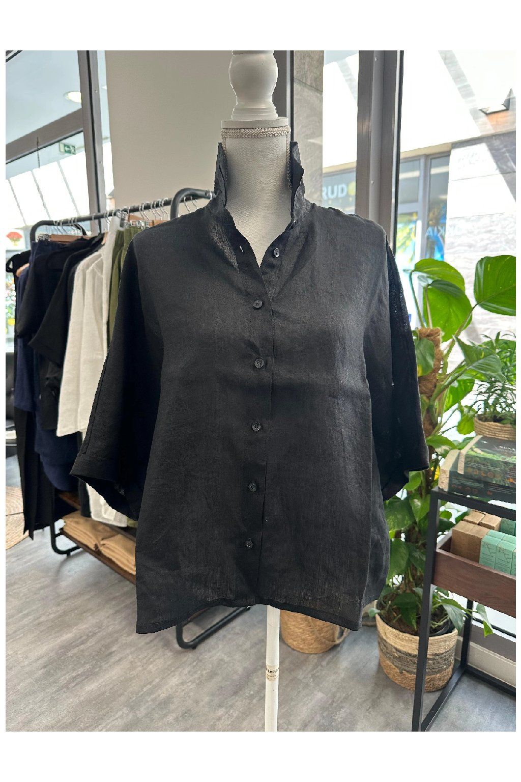 Bluse Fresh Linen Black Leinenbluse mit Knopfleiste