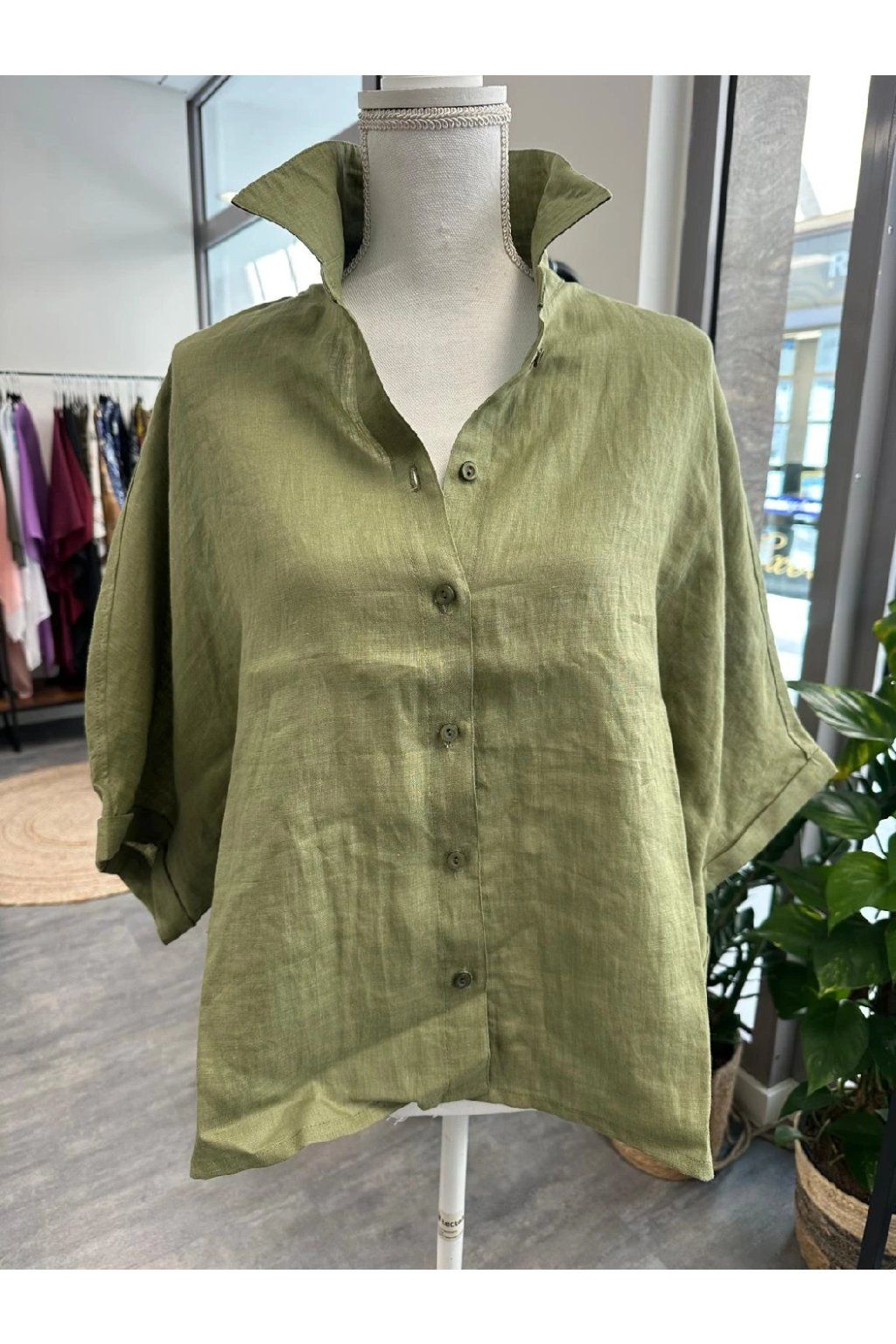 Bluse Fresh Linen Khaki Leinenbluse mit Knopfleiste