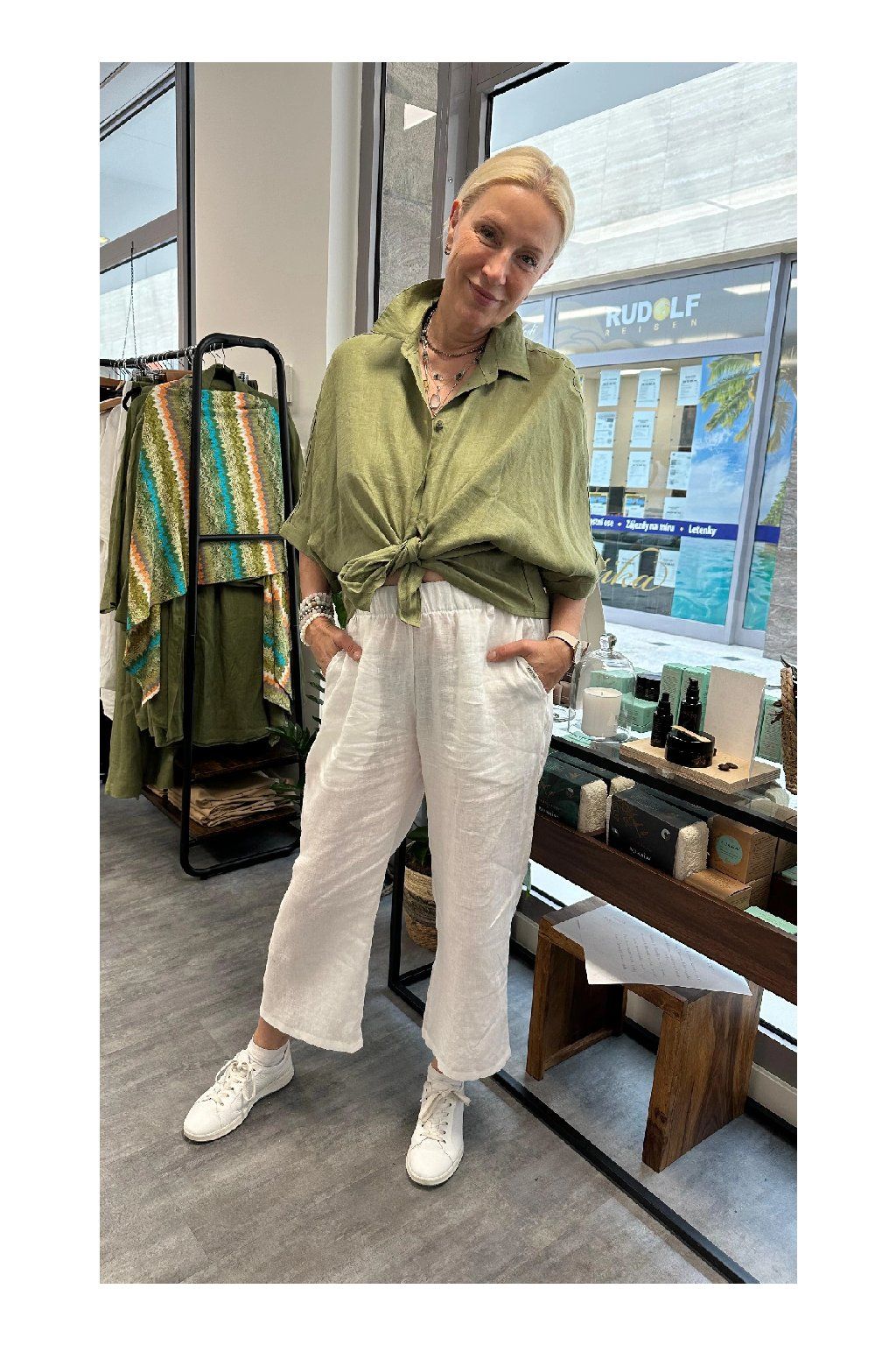 Entdecken Sie die Berührung der Natur und die perfekte Kombination aus Eleganz und Komfort mit unserer Leinenbluse Fresh Linen. Bluse mit Kragen und Knöpfen bietet maximalen Komfort und ist der ideale Sommerbegleiter für Stadt und Natur. Sie kann offen, geschlossen oder in der Taille gebunden getragen werden. Fresh bedeutet frisch, und die Bluse Fresh bringt sicherlich frischen Wind in Ihre Outfits.