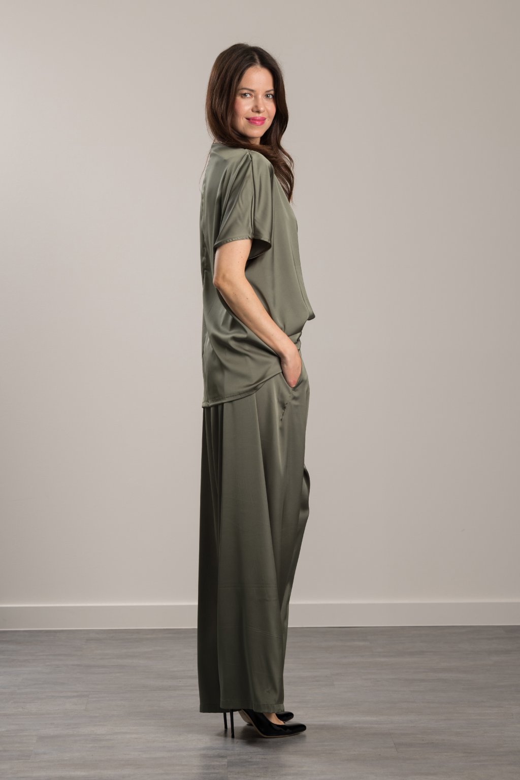 Elegante Hose Sara Silk Olive Elegante Satinhose