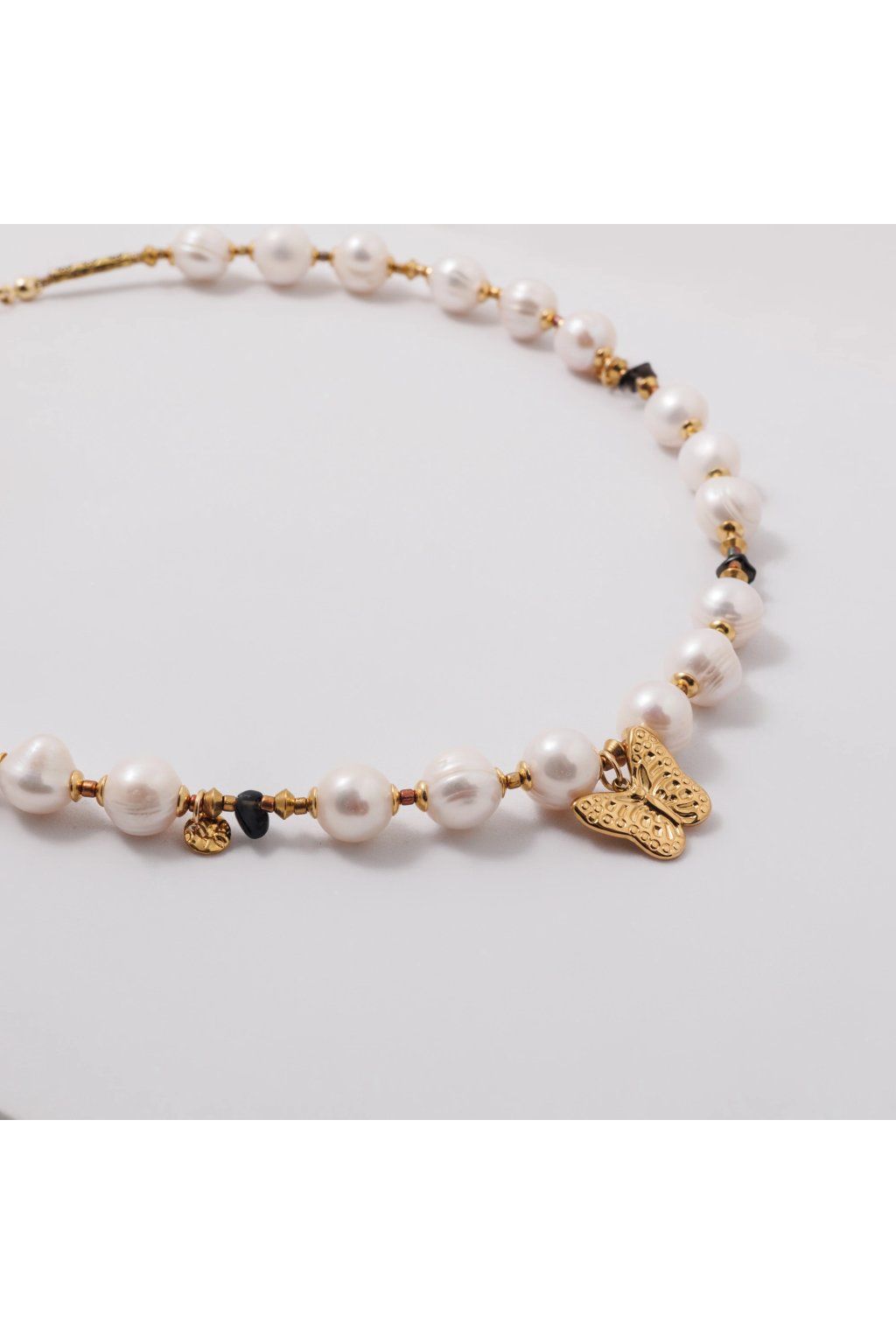 Halskette Vanessa Zeitlose Eleganz von Perlen und Steinen mit einem Schmetterling