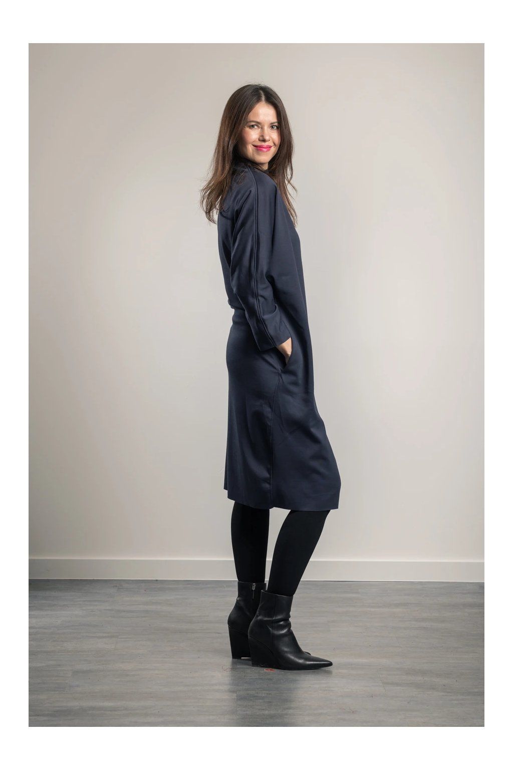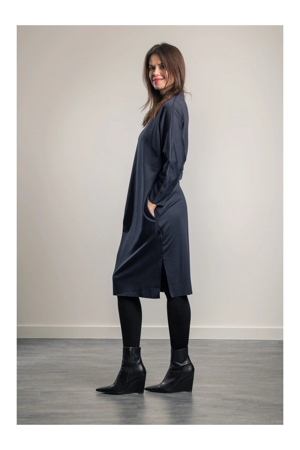 Kleid Essence Marineblau Elegantes Stretch-Kleid mit Schlitz an der Seite