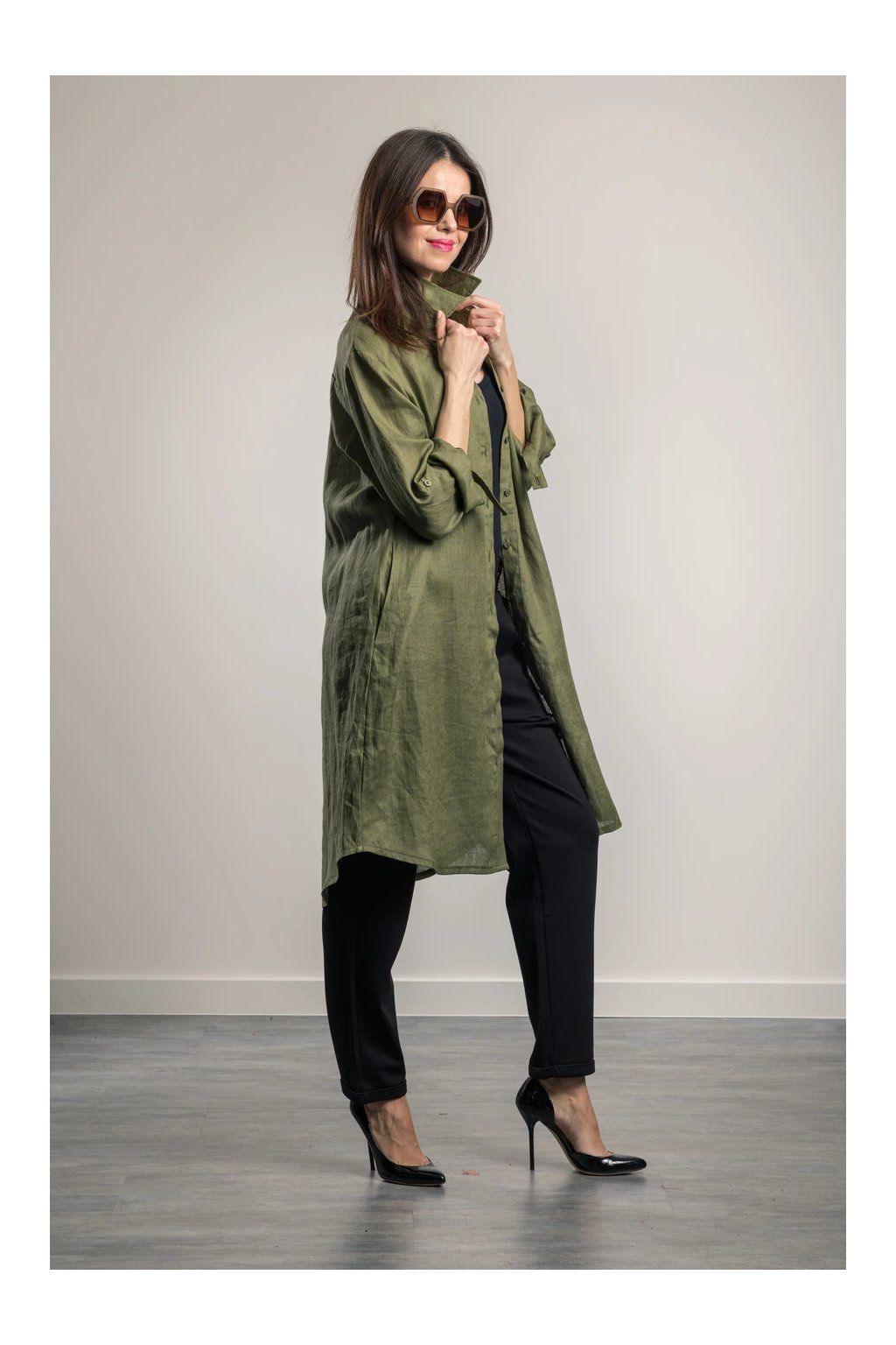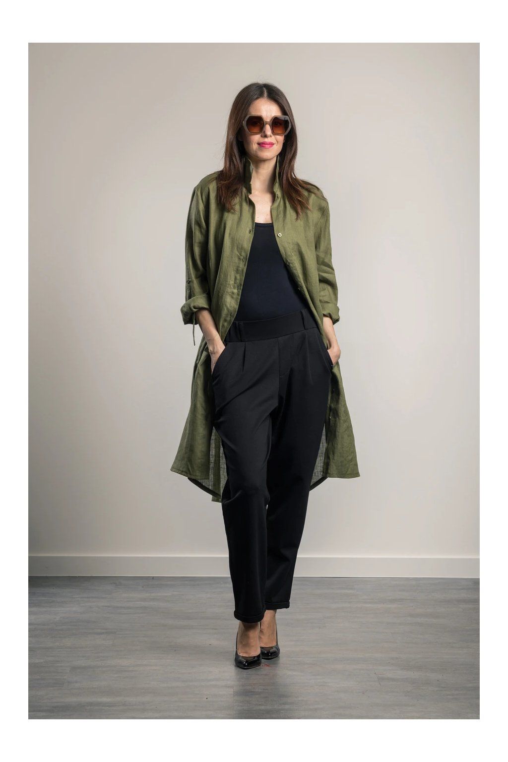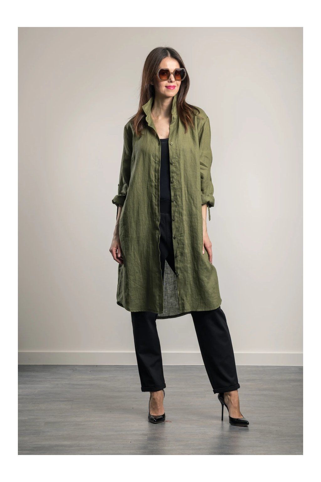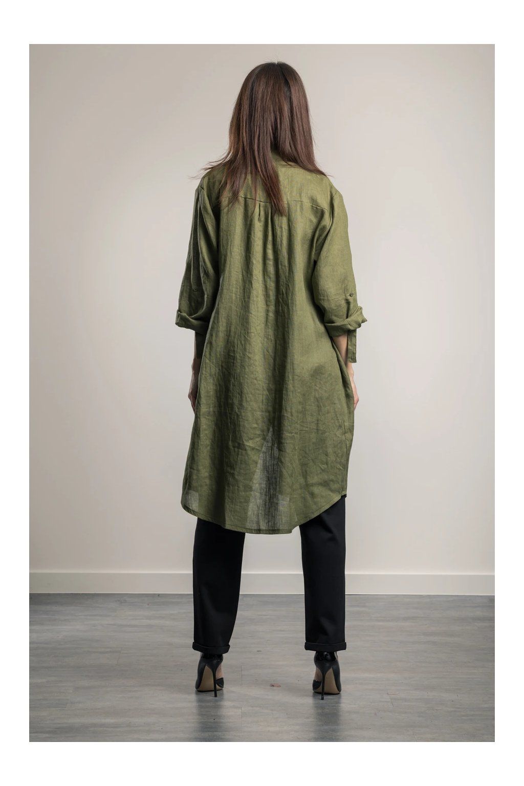 Leinenhemd Romy Khaki Maxi-Hemd aus feinem Leinen