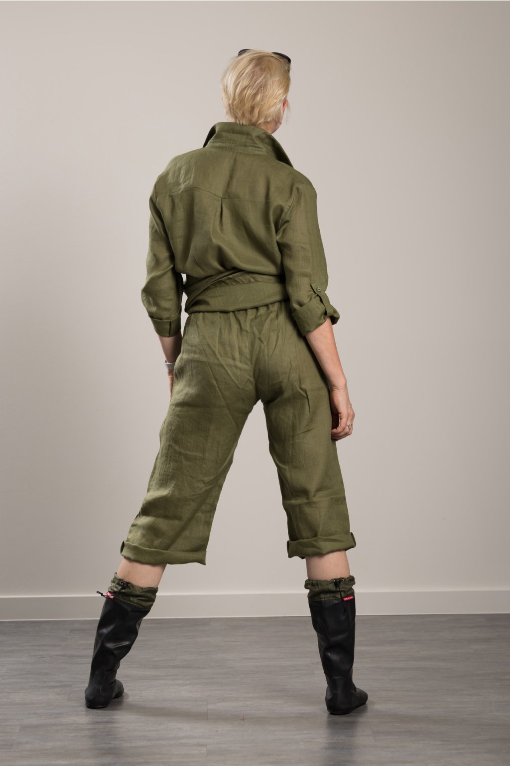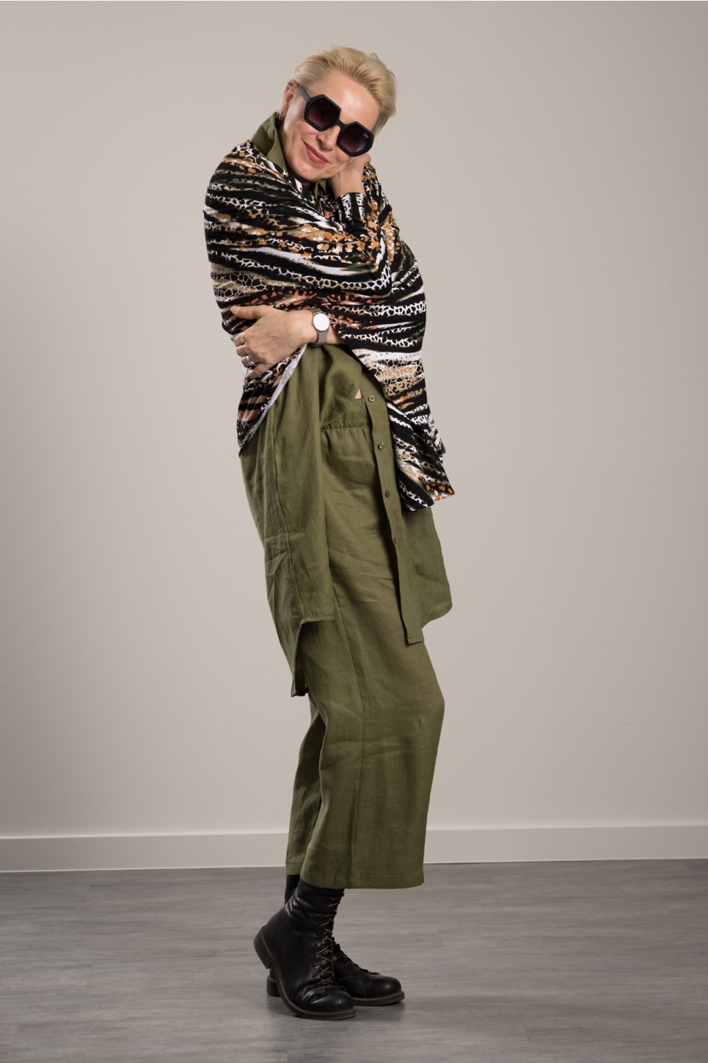 Leinenhose Romy Khaki 7/8 Maxi-Hemd aus feinem Leinen
