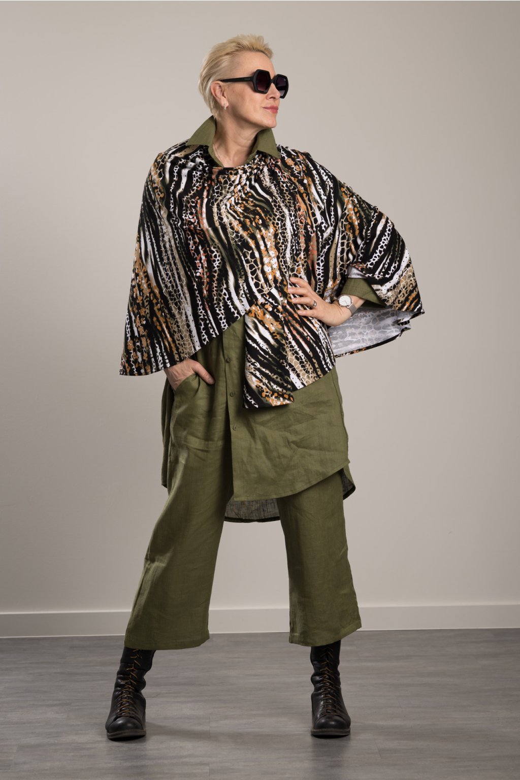 Leinenhose Romy Khaki Maxi-Hemd aus feinem Leinen