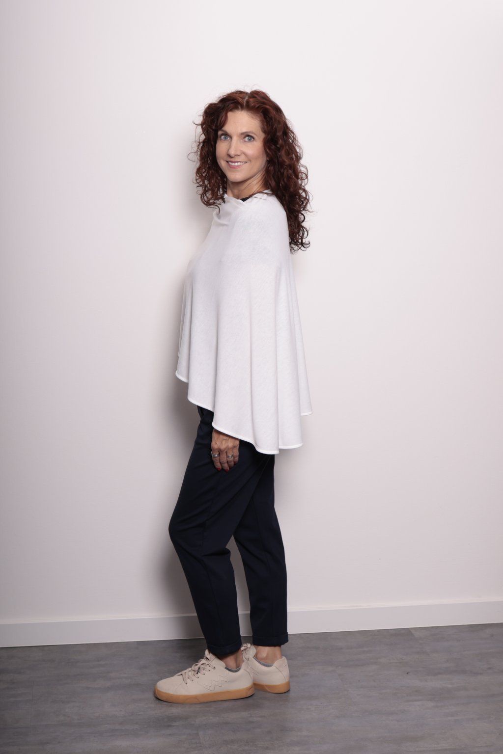 Extrem feiner Strick, der sich fast schwerelos anfühlt und jedes Outfit auf natürliche Weise ergänzt. Fällt schön, knittert nicht und sitzt dank unseres speziellen Schnitts mit runden Spitzen perfekt auf den Schultern.