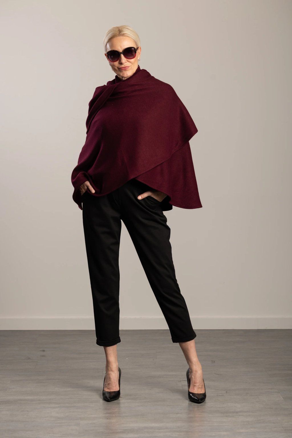 Plaid Sweater Princess Burgundy Eleganter Strickschal mit Knopfleiste
