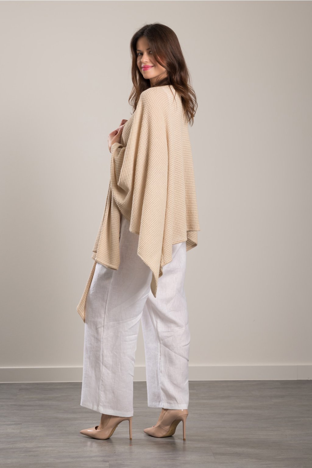 Das fließende und angenehm anzufassende Plaid aus feinem Strick mit Waffelmuster ist ideal nicht nur für Sommertage, sondern auch für leichte Schichten das ganze Jahr über. Waffelstruktur verleiht dem Outfit eine elegante und lässige Note, während der fließende Schnitt für maximalen Komfort sorgt. Tragen Sie es locker über die Schultern, als Schal oder als elegantes Accessoire zum Mantel – Sie werden immer schick aussehen und sich wohlfühlen.