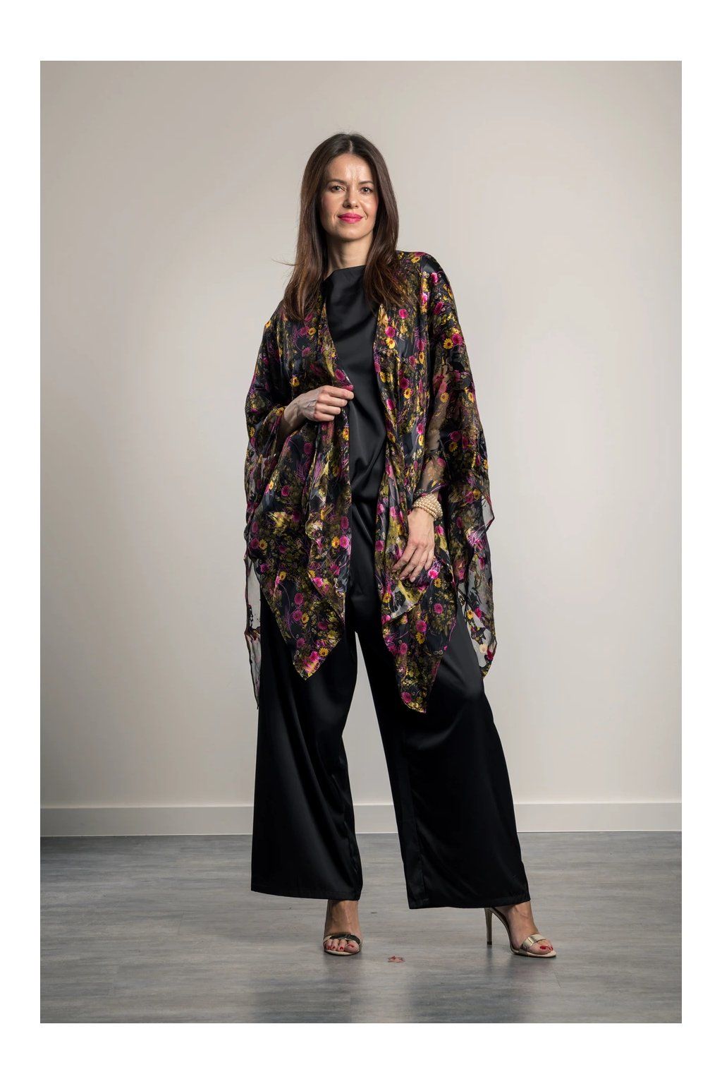 3-in-1 Isabelle Mystic Petals Throw Luxurious silk magnetic shawl / dress / blouse