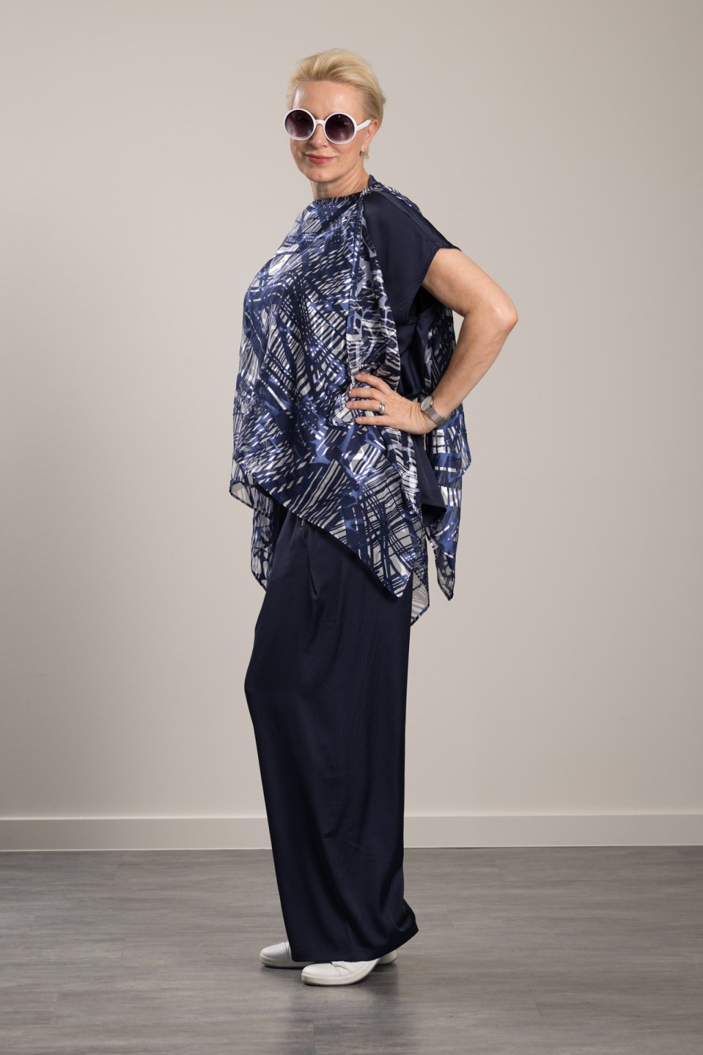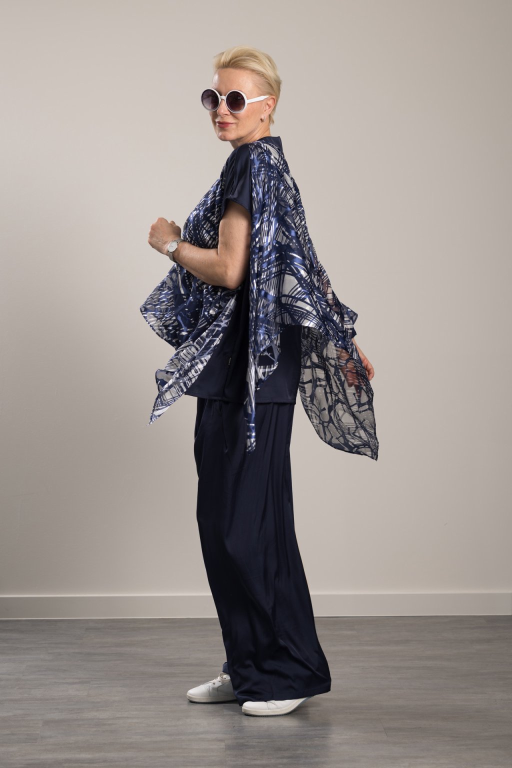 3-in-1 Throw Isabelle Blue Ornaments Luxurious silk magnetic shawl / dress / blouse