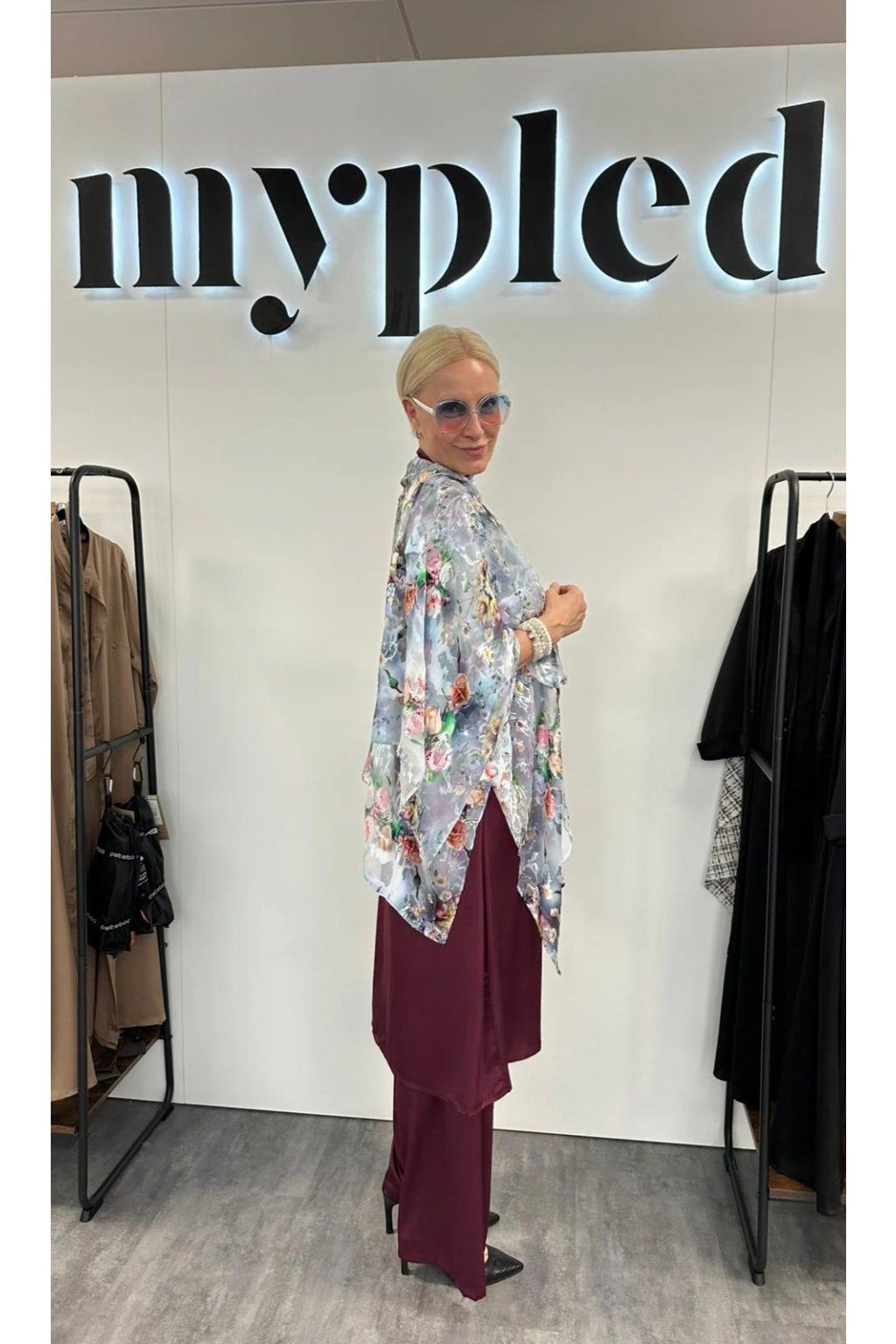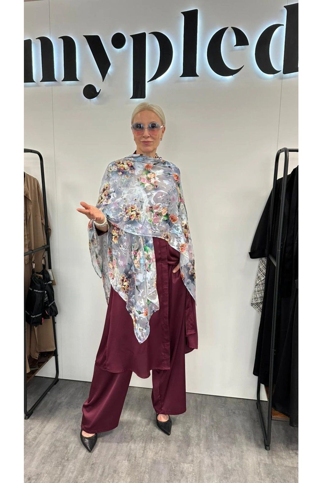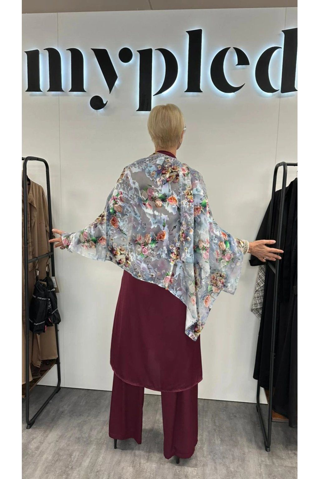 3-in-1 Throw Isabelle Sky Blue Garden Luxurious silk magnetic shawl / dress / blouse
