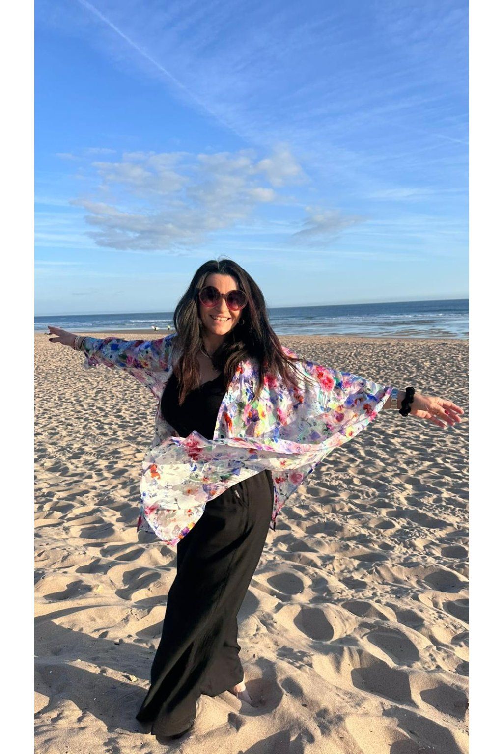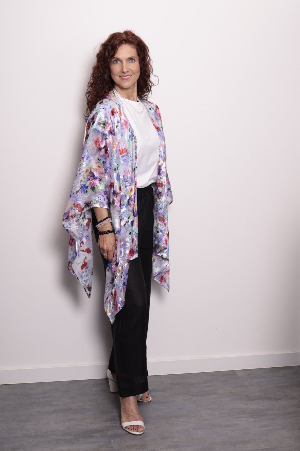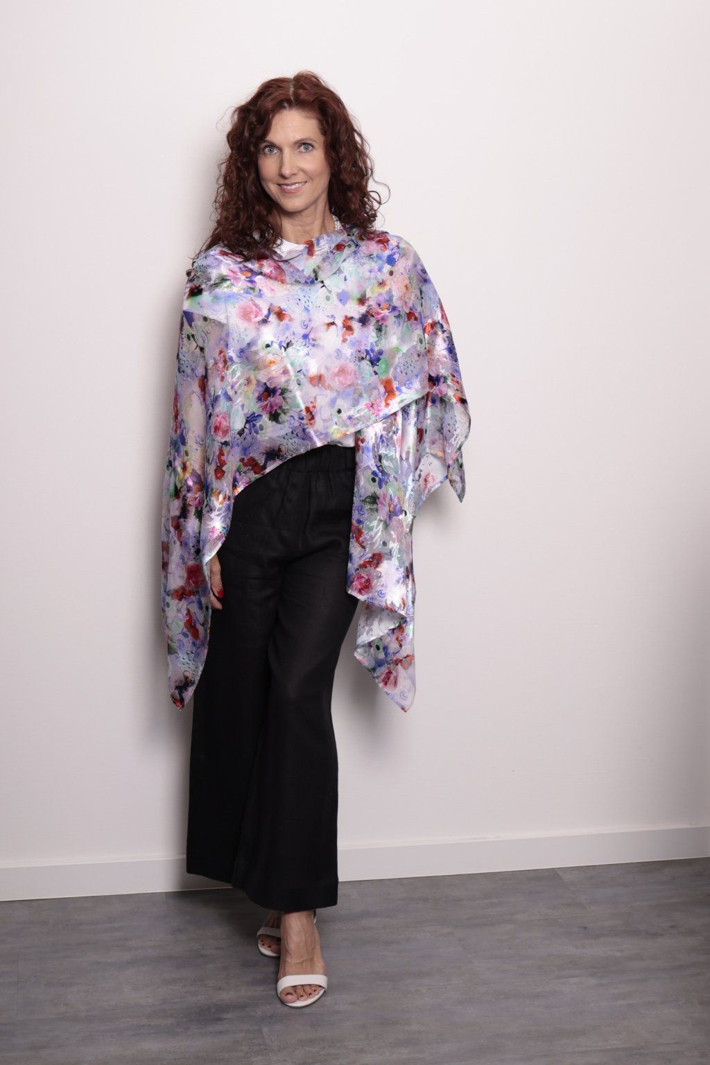 3v1 pléd Isabelle Flowers Luxurious silk magnetic shawl / dress / blouse