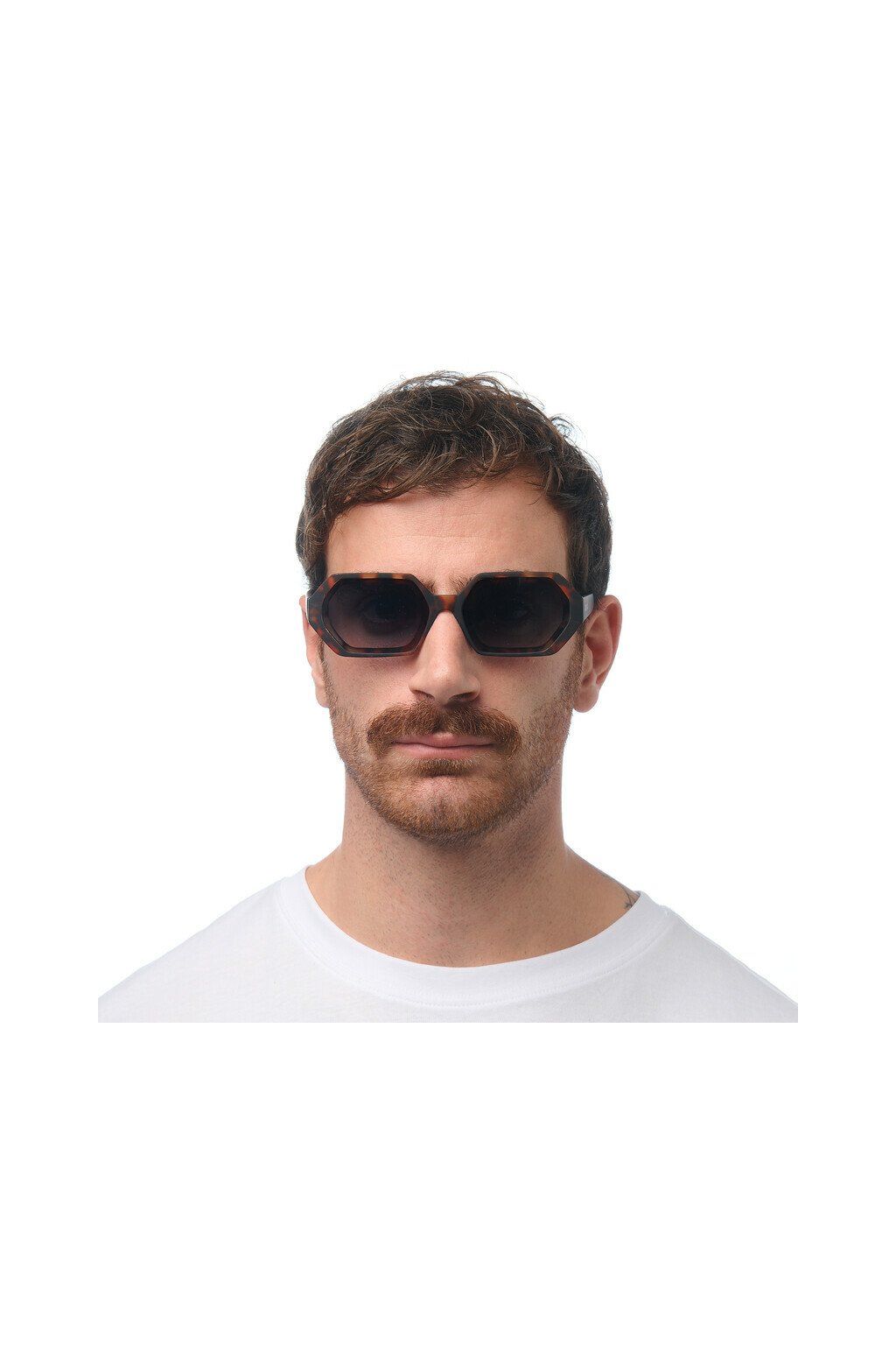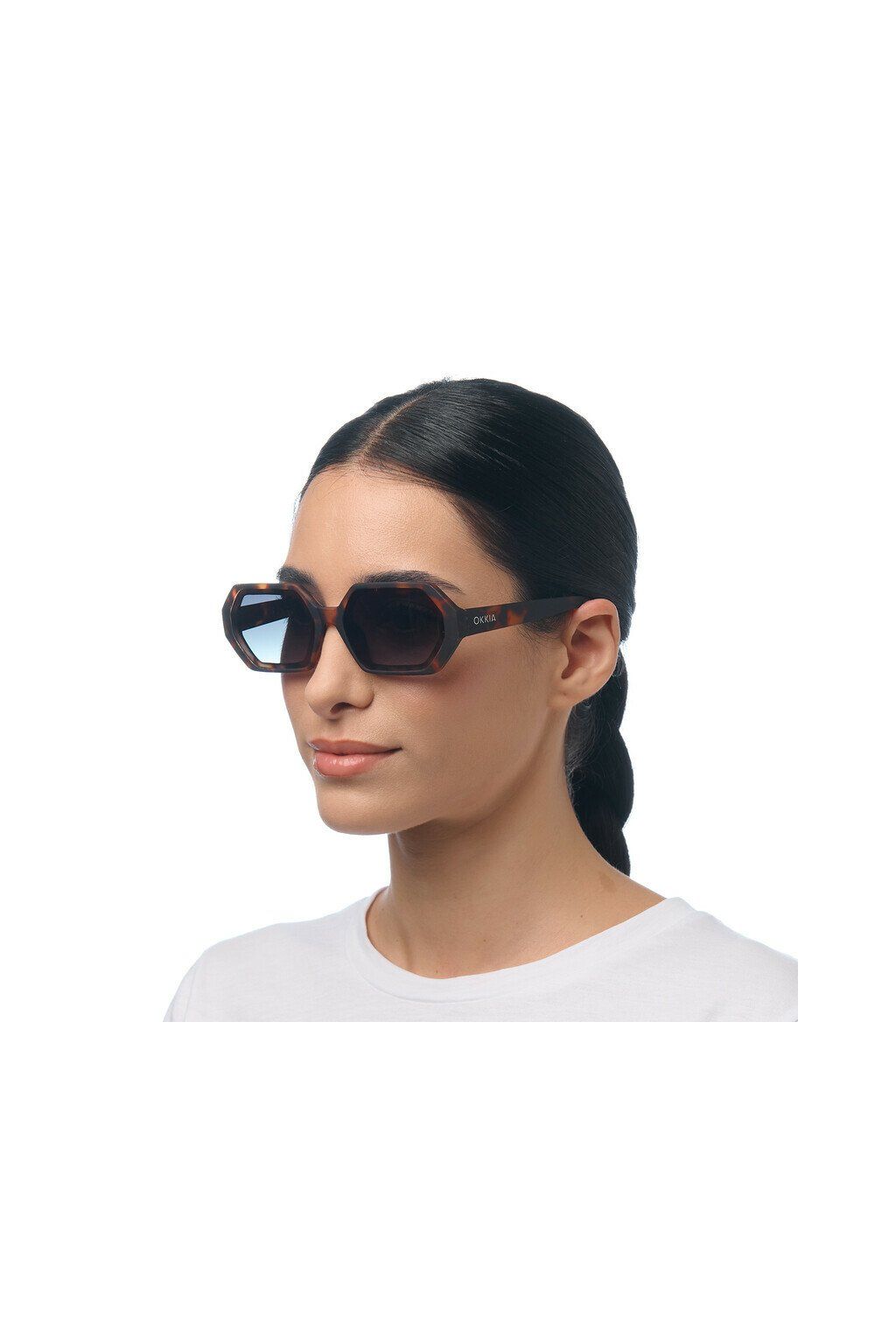 ANDREA are hexagonal sunglasses. The soft touch surface gives the wearer a feeling of luxury and comfort. Frame colour Midnight Blue, lenses blue gradientAdditional parameters