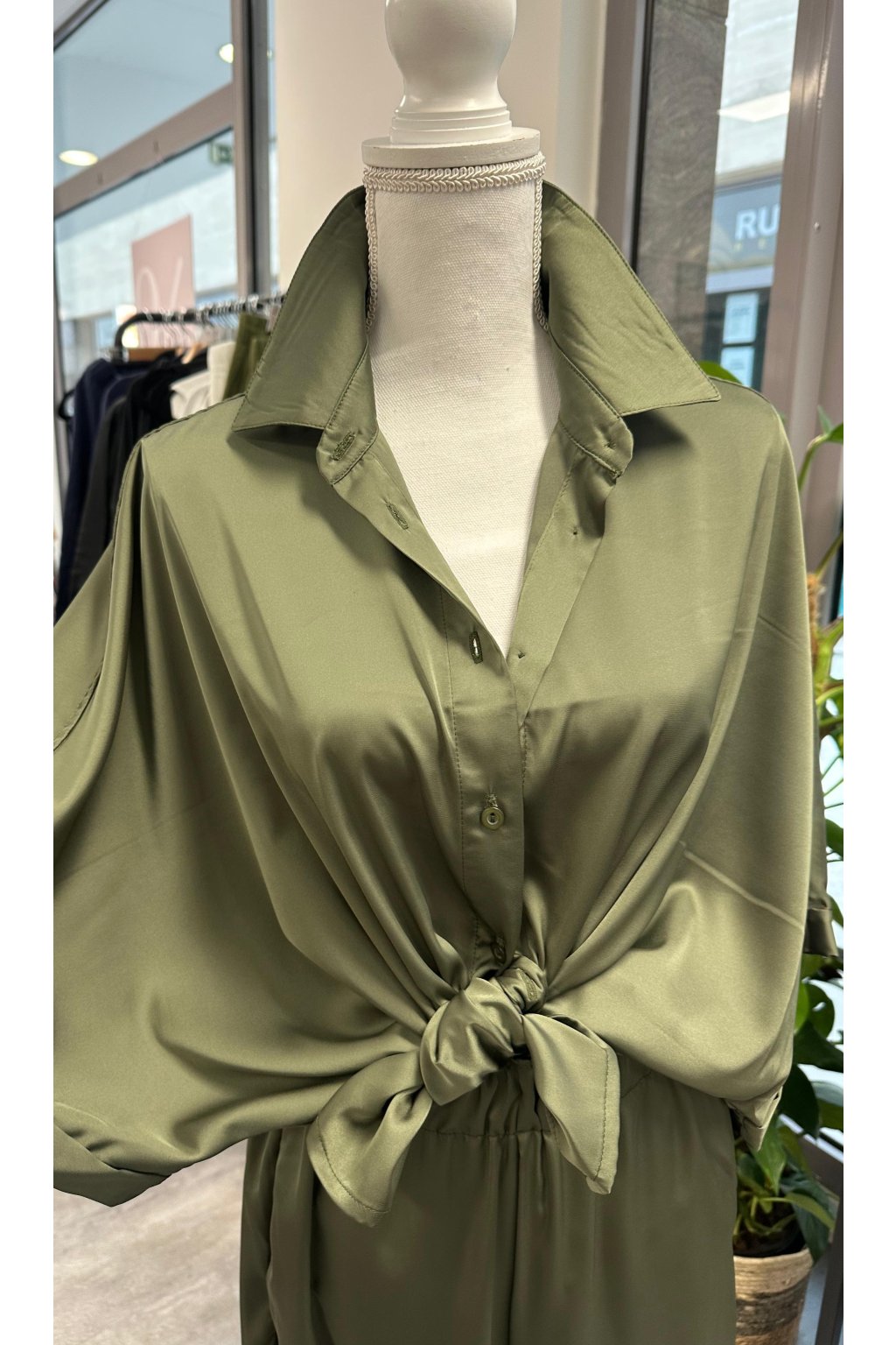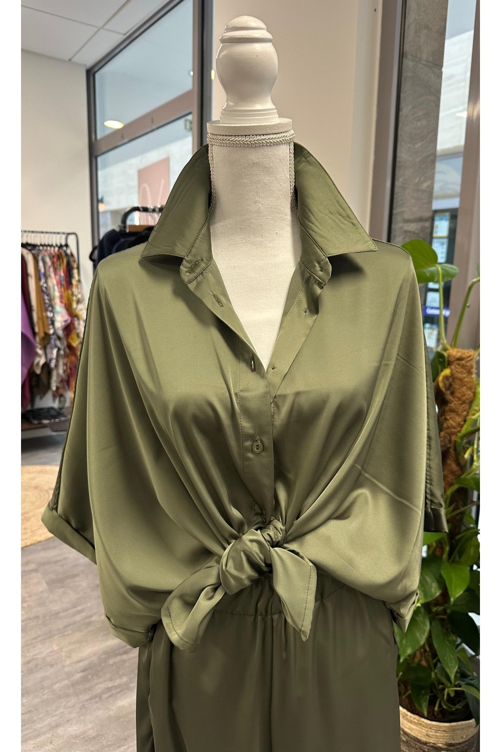 Blouse Fresh Silk Olive Satin blouse with buttons