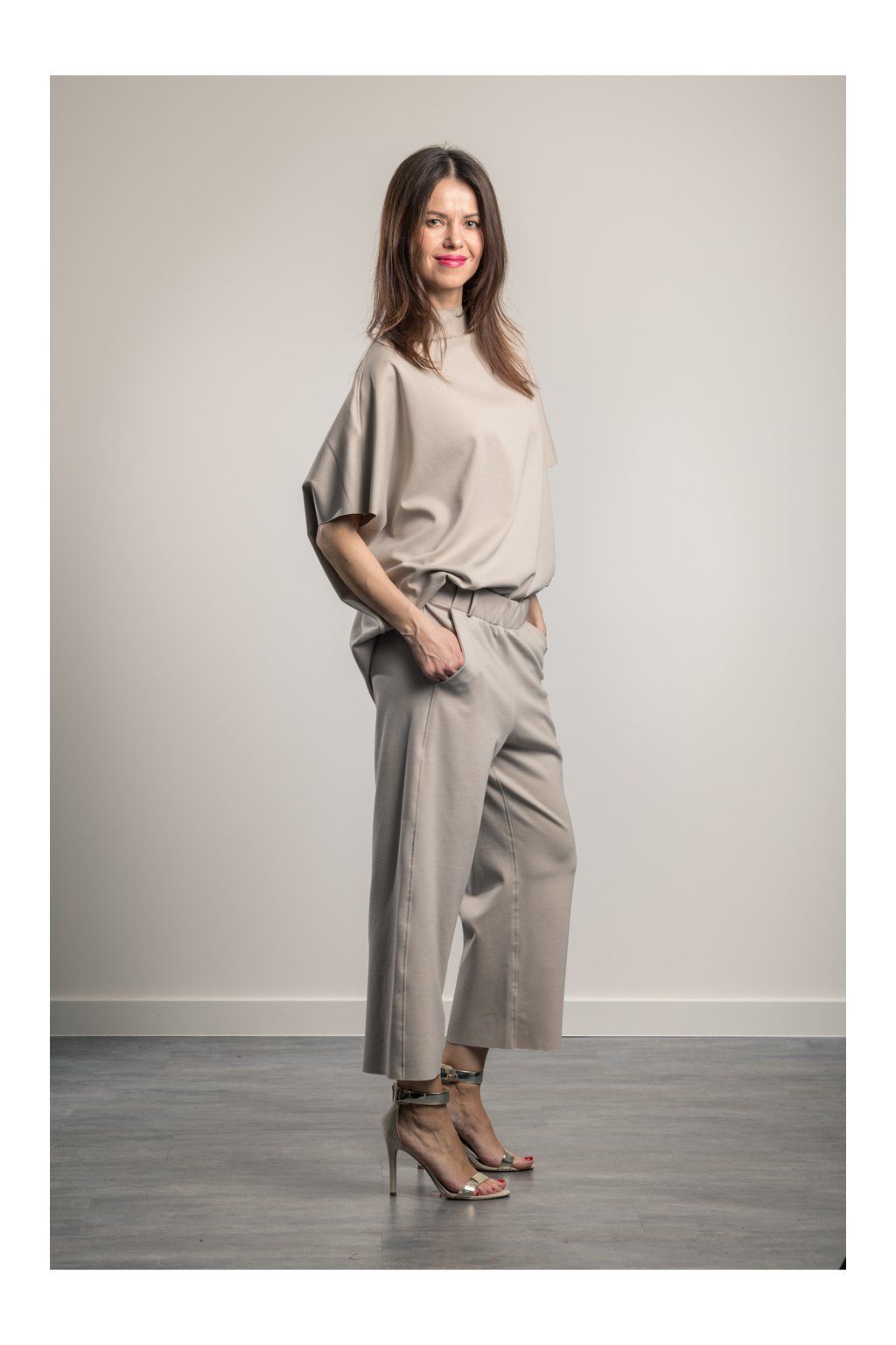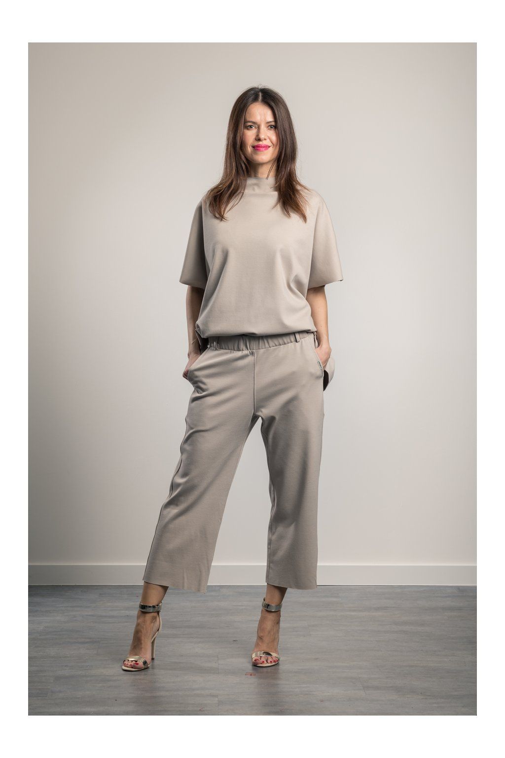 Stylish, comfortable and perfectly adaptable – these trousers are an ideal addition to any woman's wardrobe. They have a sophisticated above-the-ankle length. They combine elegance with practicality, and their timeless design is suitable for various occasions. Not only are they incredibly comfortable, but they also help to visually enhance your figure.The trousers feature a wide, comfortable elastic waistband that visually slims the tummy at the front, while being gently gathered at the back for maximum flexibility and comfort. In summer with trainers or flip-flops, all year round with court shoes or boots. Colour: beige
