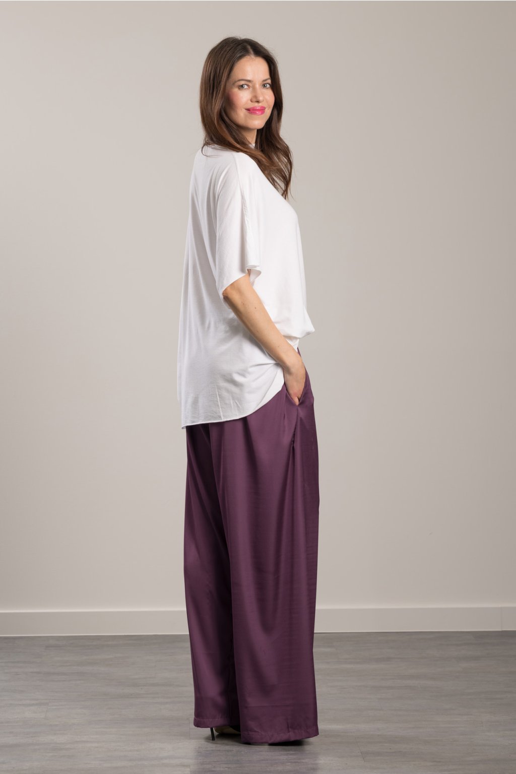 Discover the perfect combination of elegance and comfort with our satin Sara Silk trousers. Long, wide, flowing trousers for a timeless and sophisticated look, offering endless outfit variations. They are suitable for every figure, and can be worn with elegant shoes or trainers.
