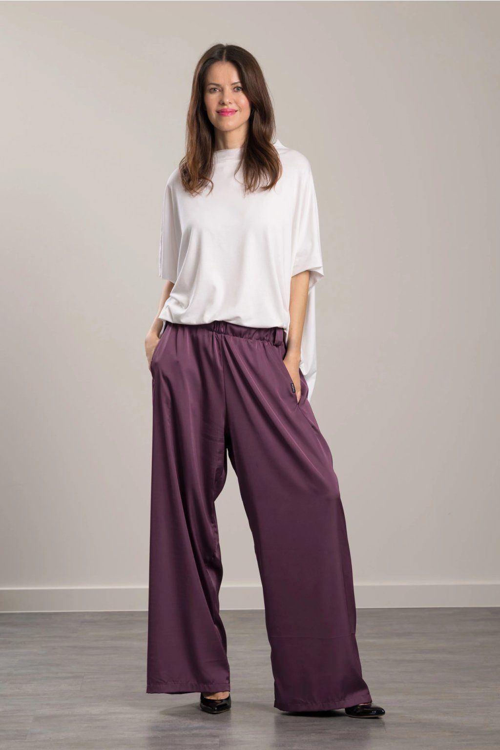 Discover the perfect combination of elegance and comfort with our satin Sara Silk trousers. Long, wide, flowing trousers for a timeless and sophisticated look, offering endless outfit variations. They are suitable for every figure, and can be worn with elegant shoes or trainers.