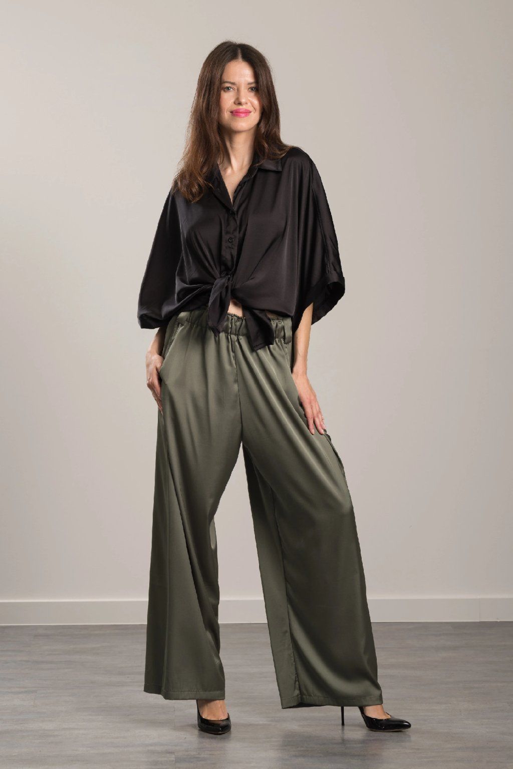 Discover the perfect combination of elegance and comfort with our satin Sara Silk trousers. Long, wide, flowing trousers for a timeless and sophisticated look, offering endless outfit variations. They are suitable for every figure