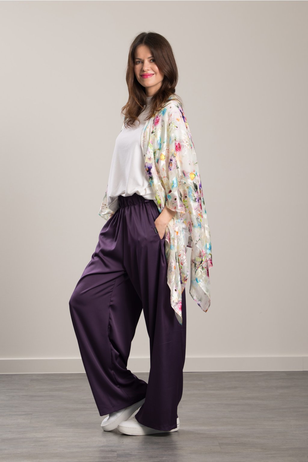 Discover the perfect combination of elegance and comfort with our satin Sara Silk trousers. Long, wide, flowing trousers for a timeless and sophisticated look, offering endless outfit variations. They are suitable for every figure, and can be worn with elegant shoes or trainers.