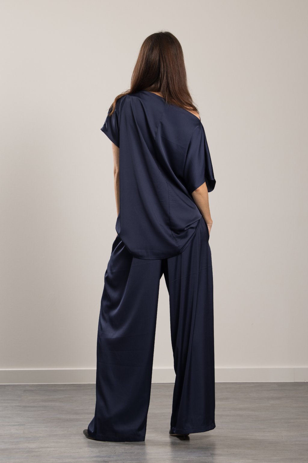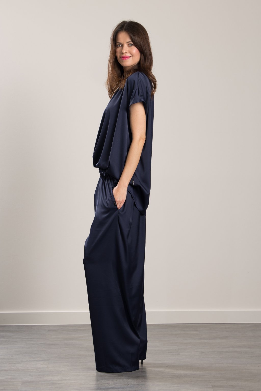Discover the perfect combination of elegance and comfort with our Sara Silk trouser set. This flowing set features long wide trousers and a sleeveless top, which together create a timeless and sophisticated look.