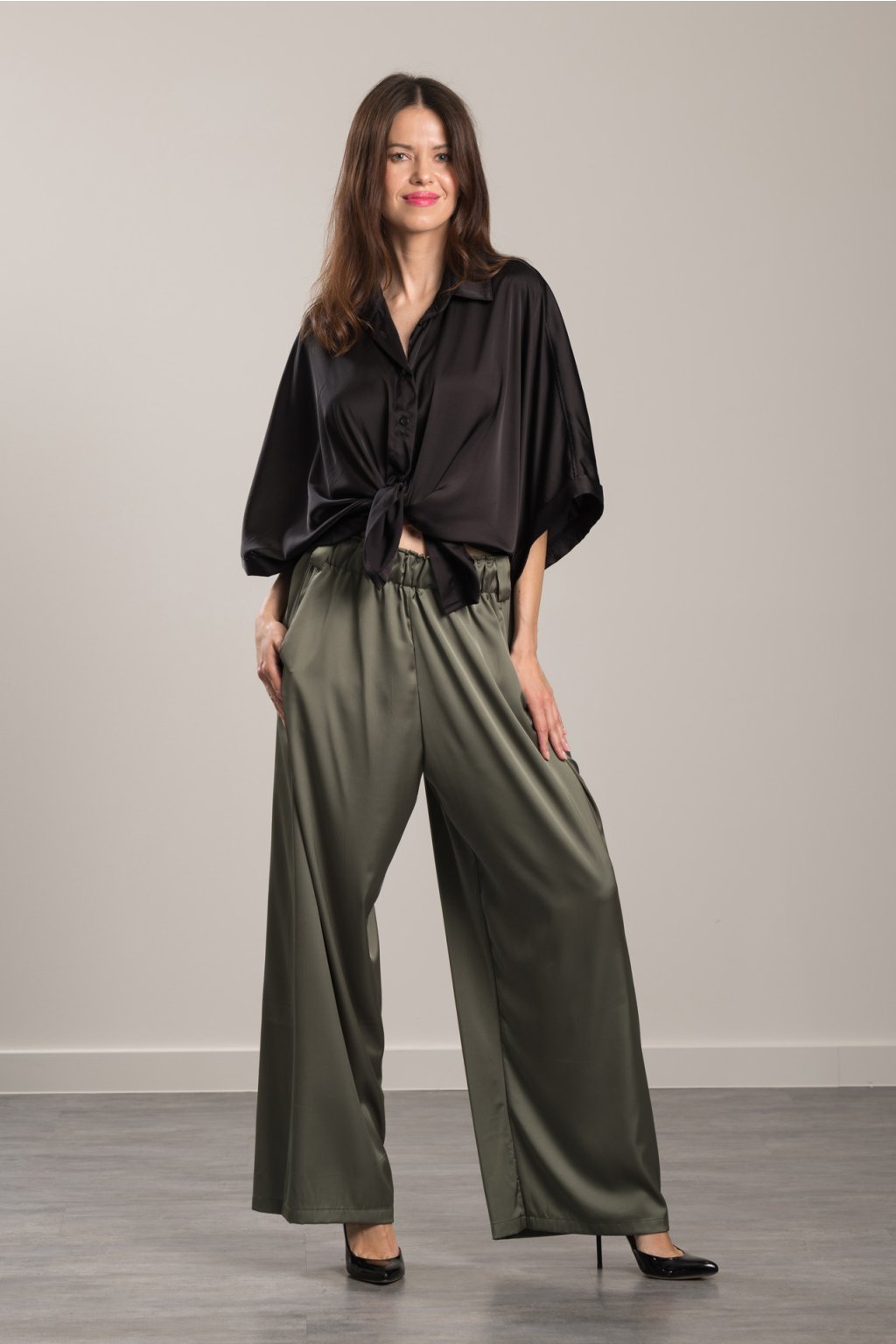 Discover the perfect combination of elegance and comfort with our satin blouse Fresh Silk. This flowing blouse with a collar and buttons with a subtle sheen provides maximum comfort and a sophisticated look. It can be worn unbuttoned, buttoned or tied at the waist. Fresh means fresh and the Fresh blouse will definitely bring a breath of fresh air to your outfits.