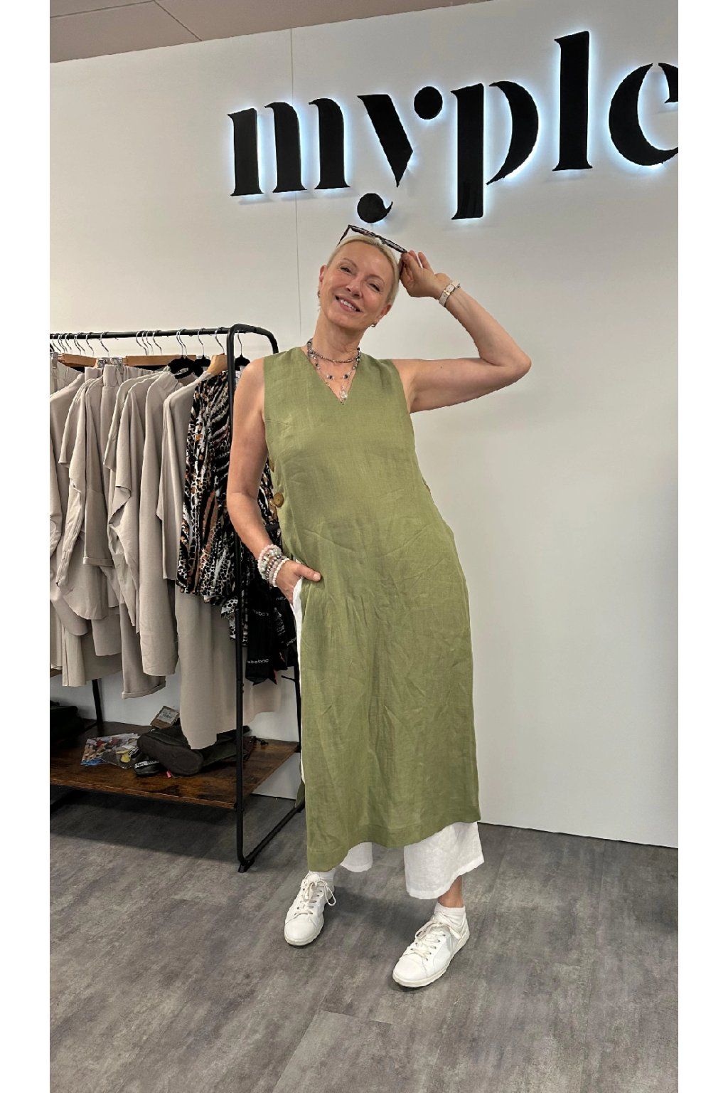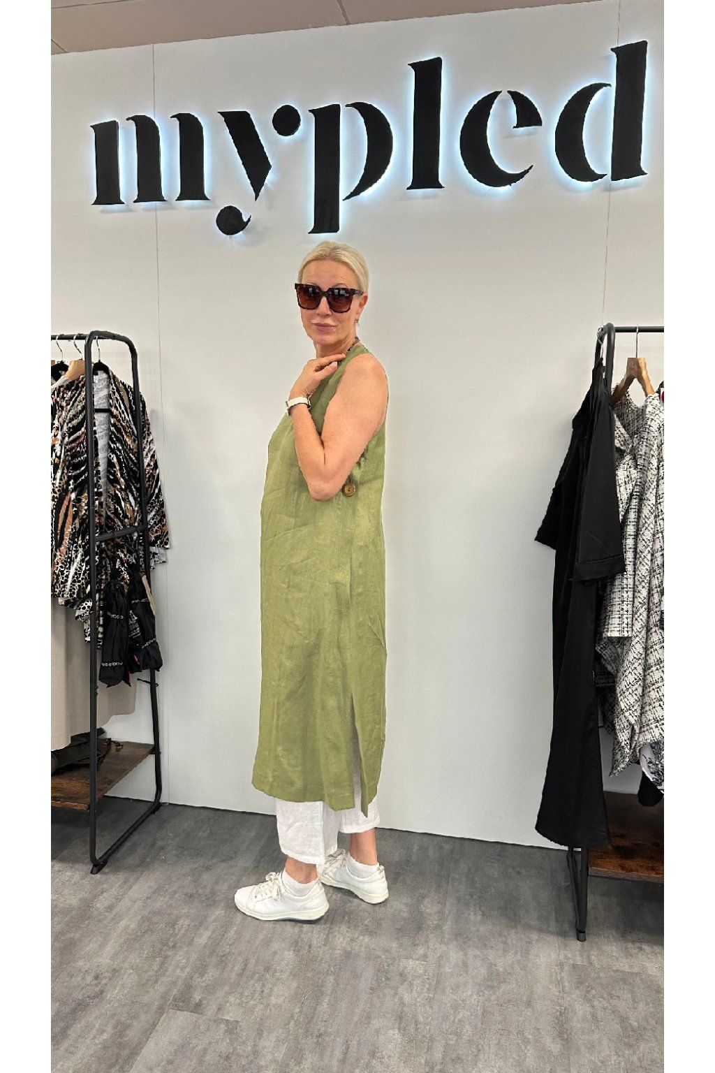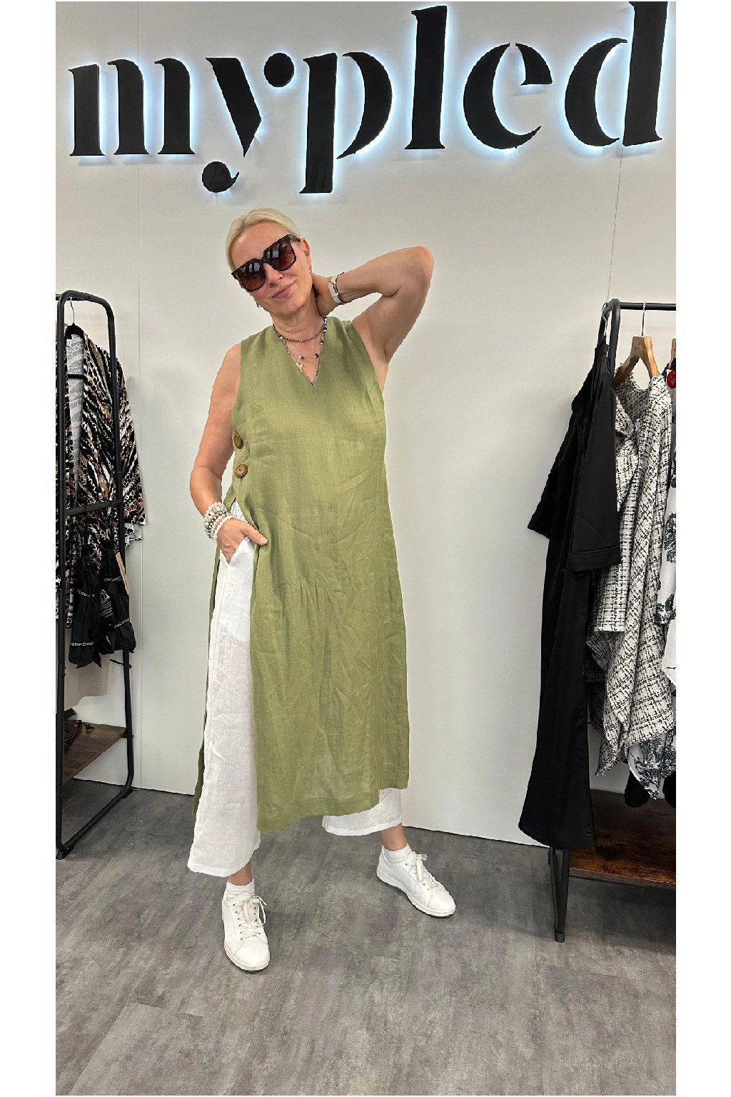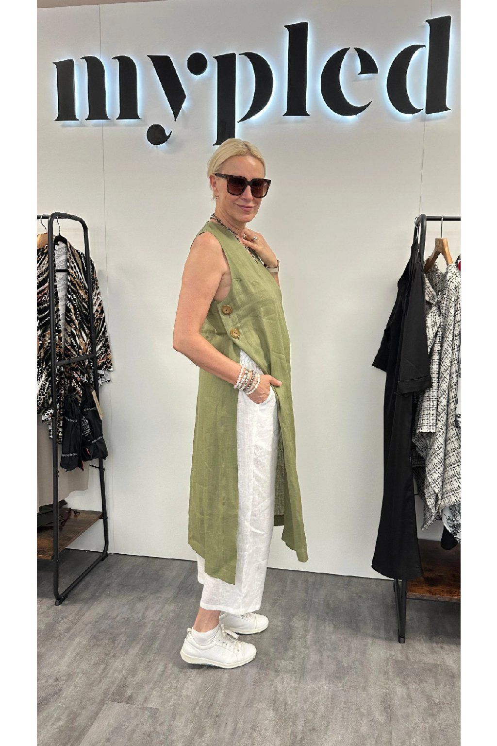Lenny Linen Khaki Tunic Linen tunic with button-down slits at the sides
