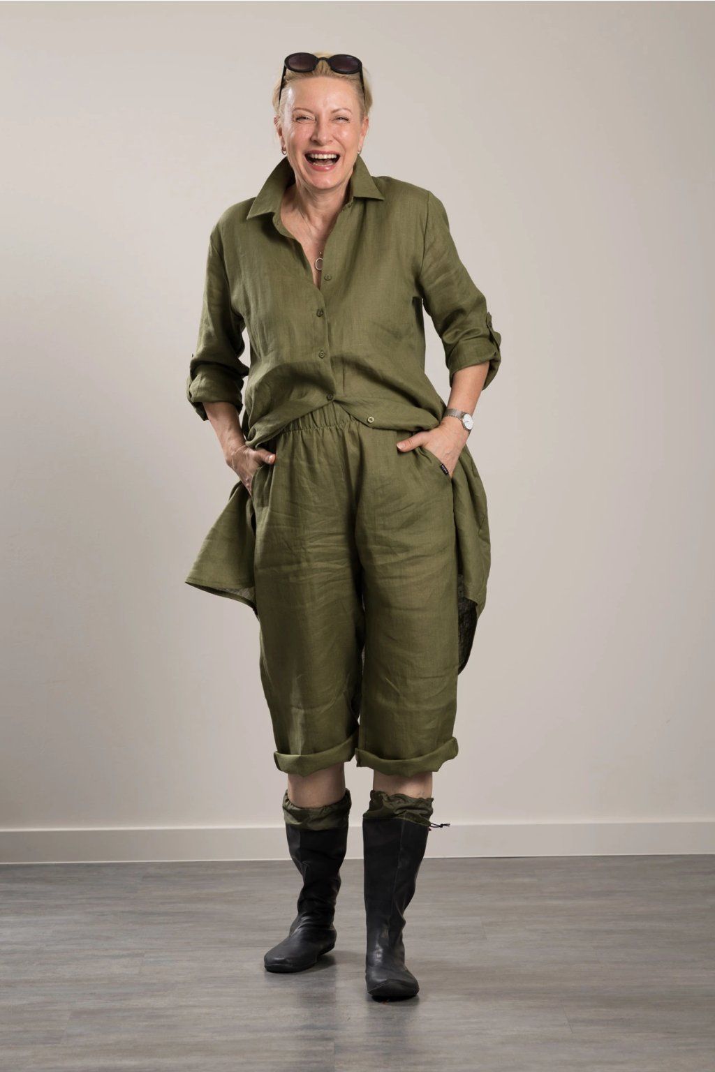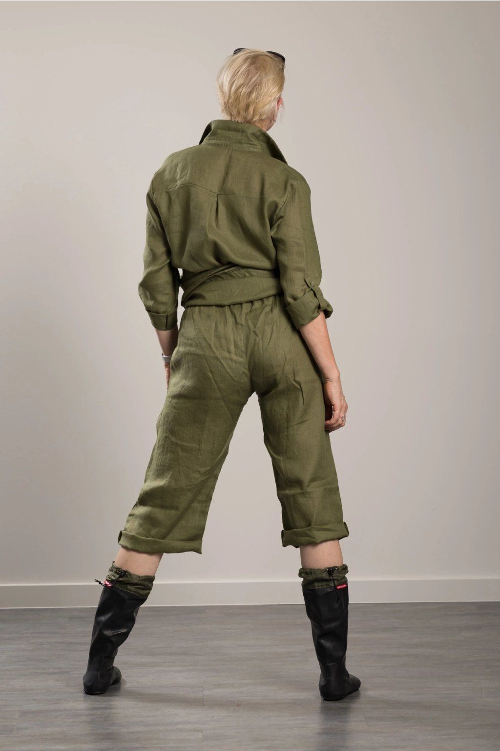 Linen Trousers Romy Khaki 7/8 Maxi shirt in fine linen