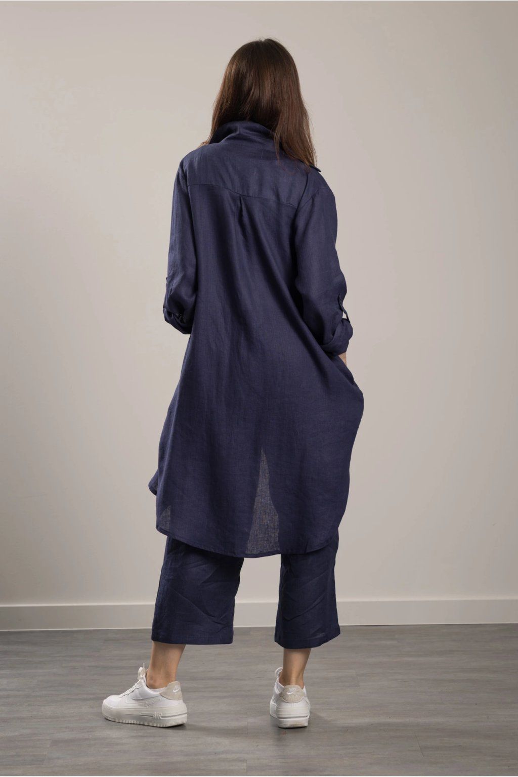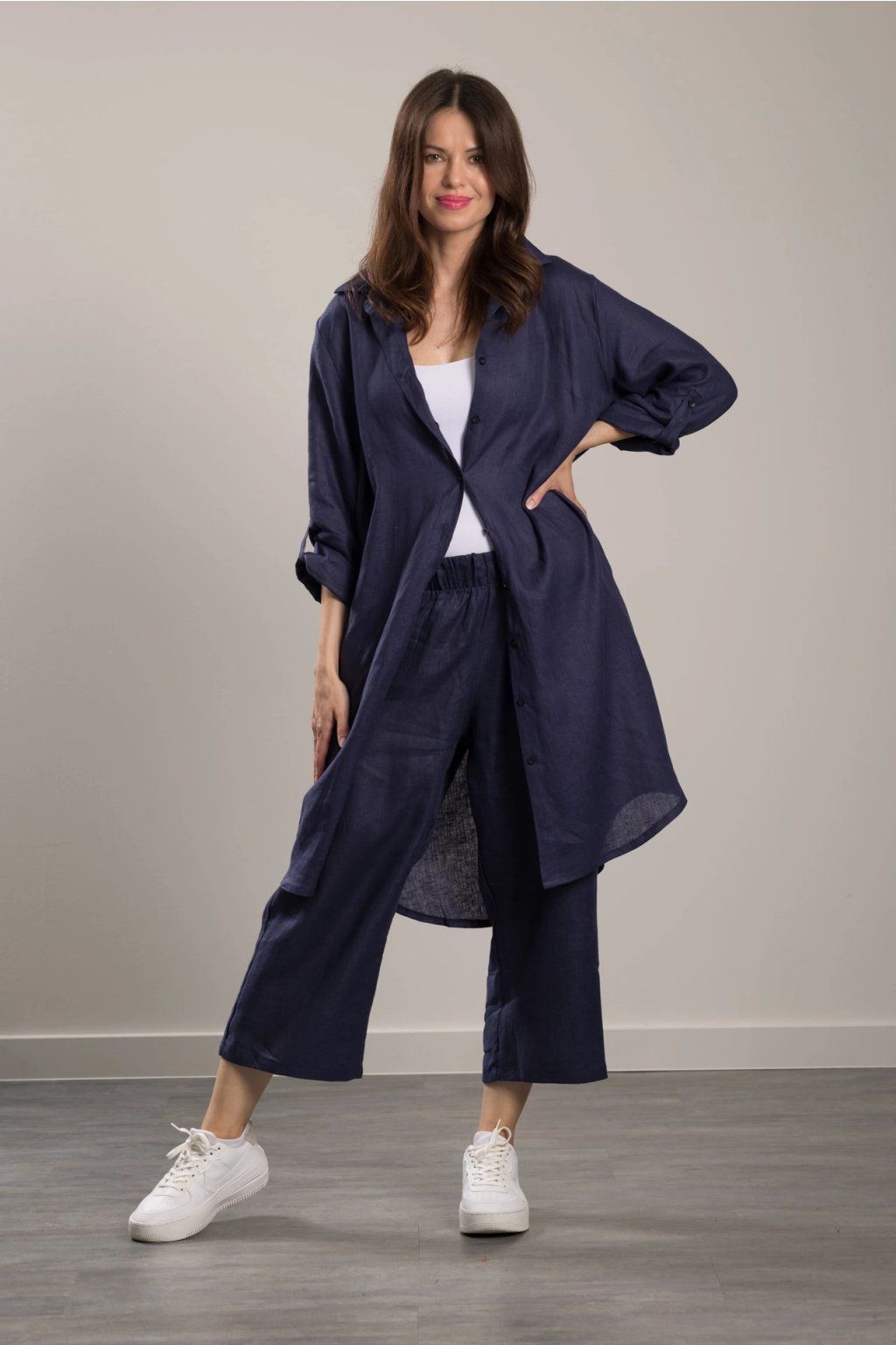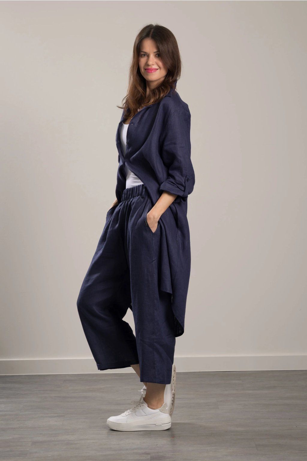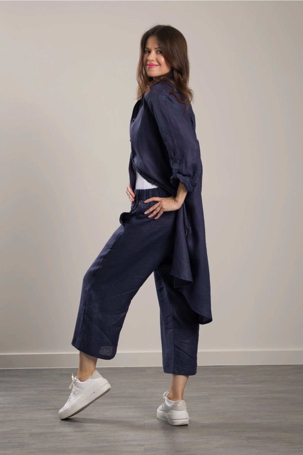 Linen Trousers Romy Navy Blue 7/8 Maxi shirt in fine linen