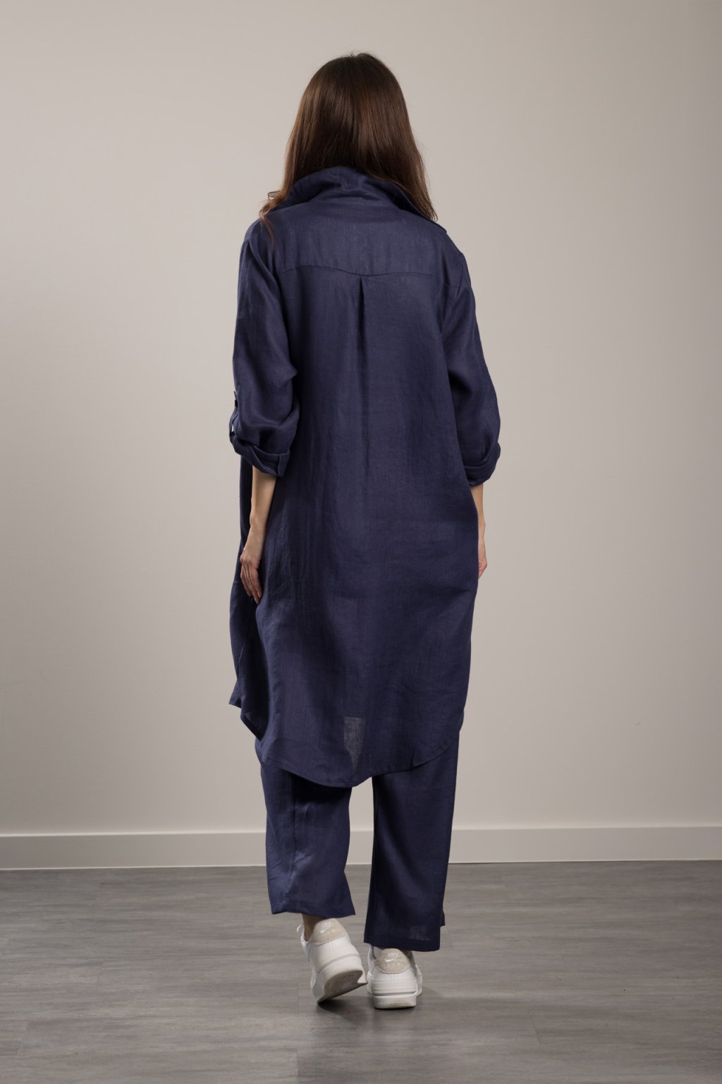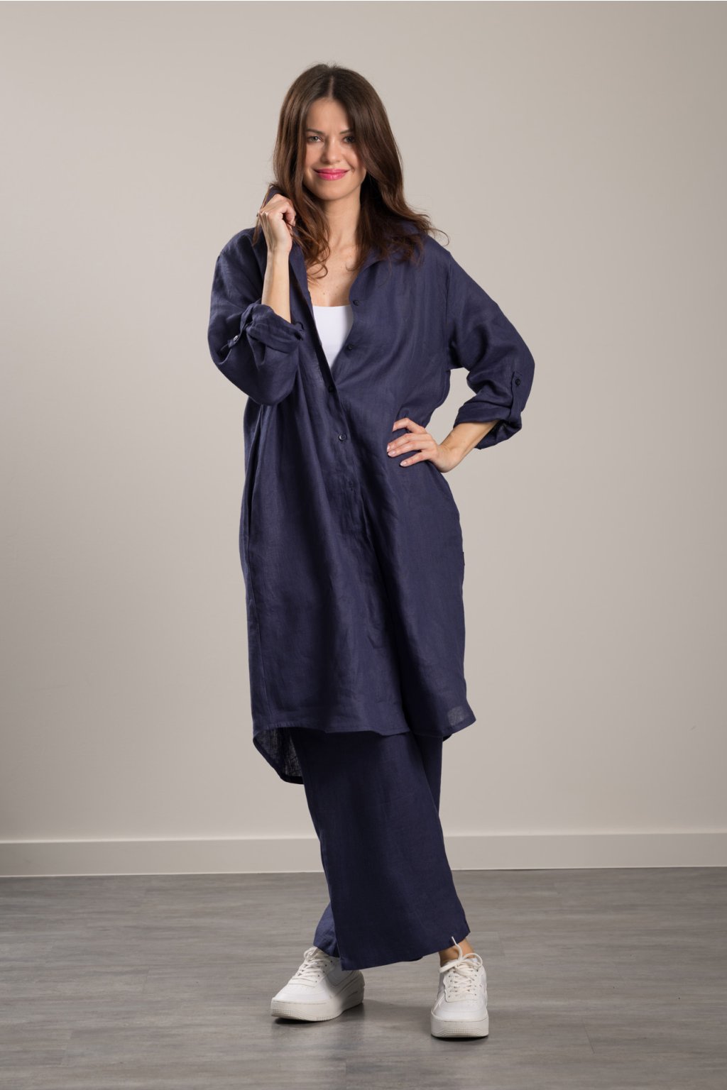 Linen Trousers Romy Navy Blue Maxi shirt in fine linen