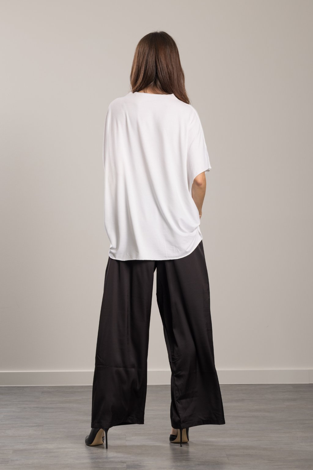 The Oversize TOP Venice from my.pled brings elegance and comfort to every situation. The thin material is light and airy. This oversize top is an essential wardrobe piece for comfort throughout the day, whether in the office, having coffee with a friend, or other leisure activities. It perfectly complements the my.pled SET, is suitable for skirts, shorts and long trousers, and looks great with a wrap.