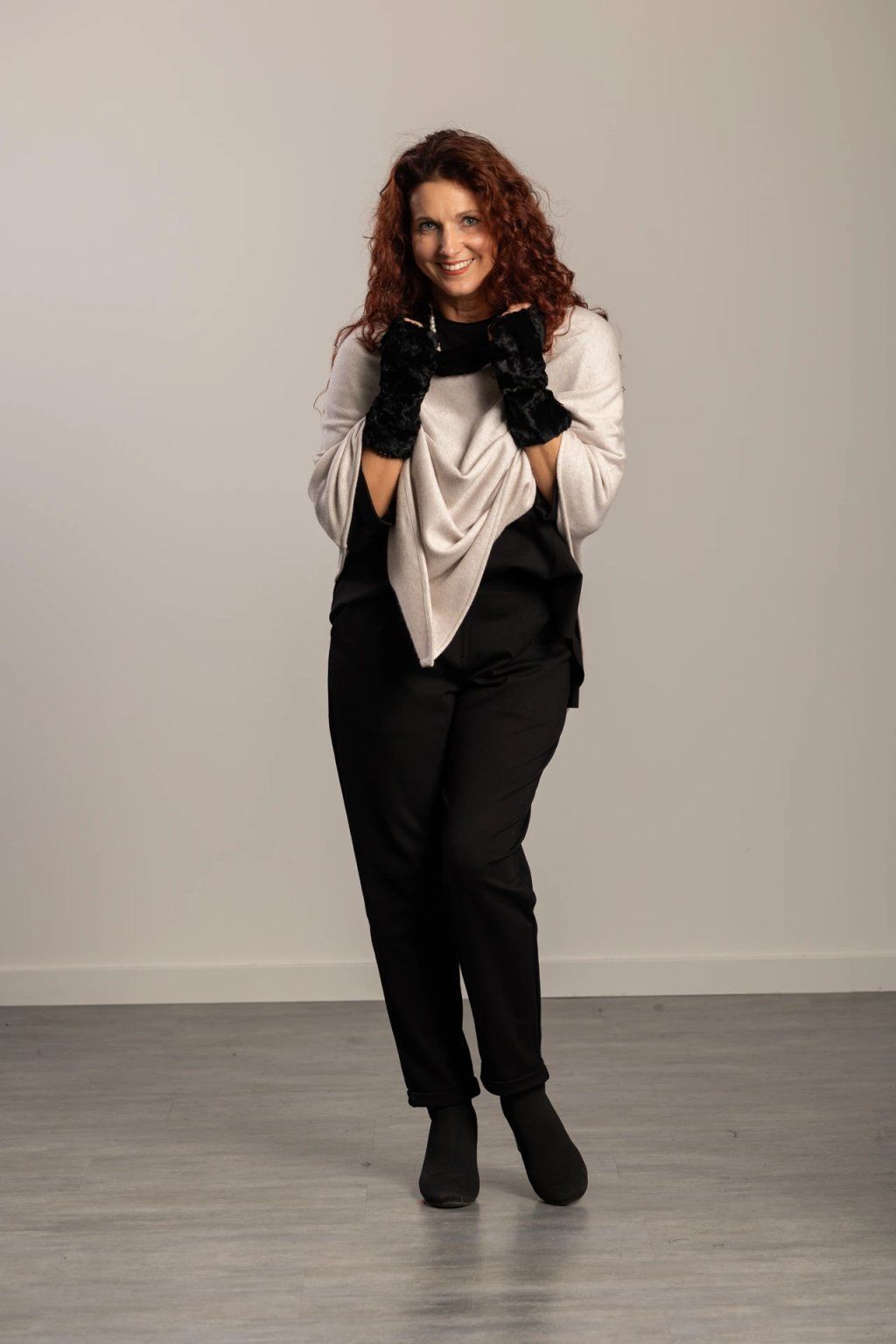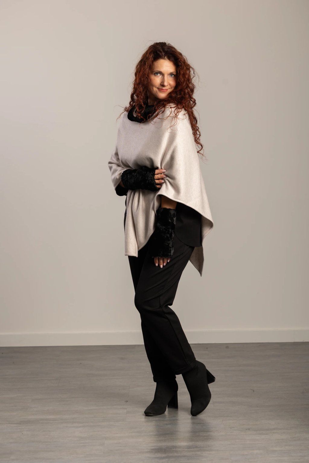 This stylish poncho is made from high-quality Italian knitwear and features a trim of soft faux fur, adding a luxurious touch. Thanks to its fine materials, it is incredibly pleasant to the touch – it will warm you and soothe both body and soul. The poncho drapes beautifully, conceals minor imperfections, and flatters every figure.