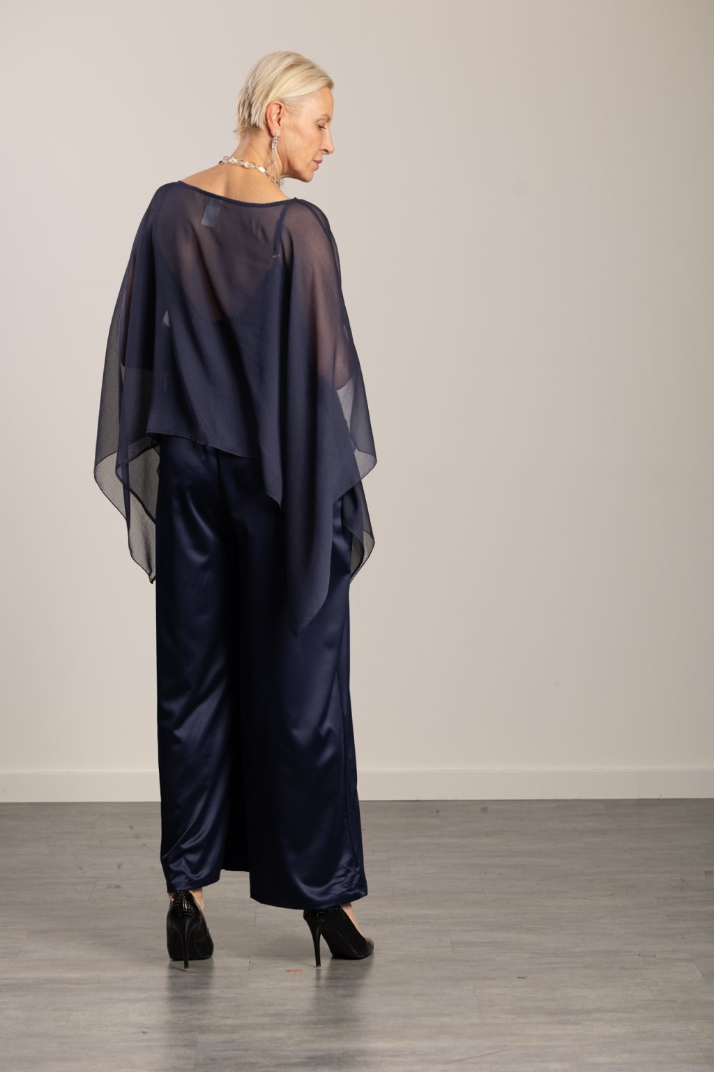 Pončo Mia Navy Blue Elegant poncho for social occasions