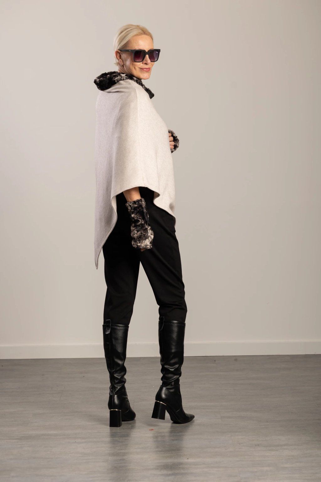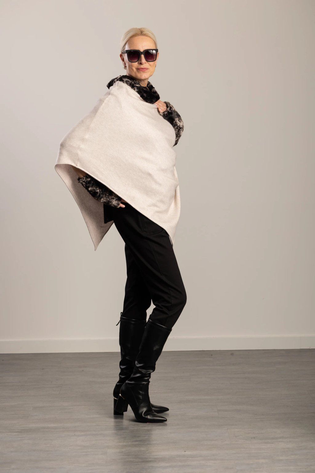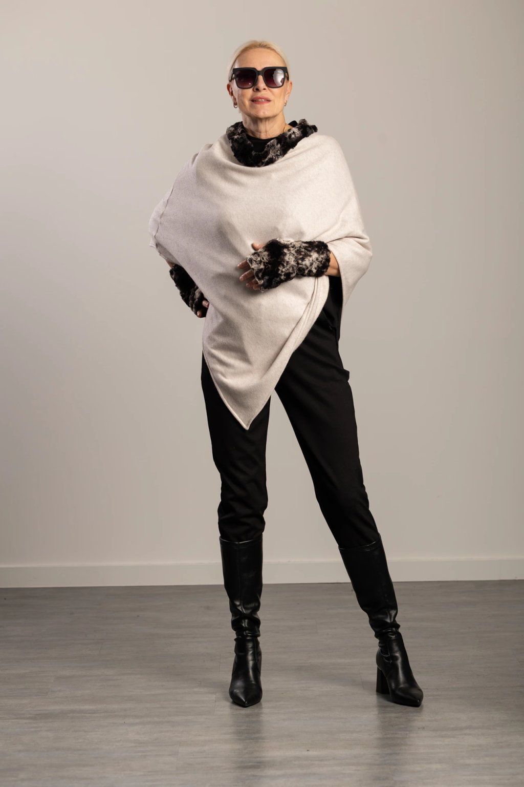 Stella Beige Wolf Poncho Elegant women's poncho