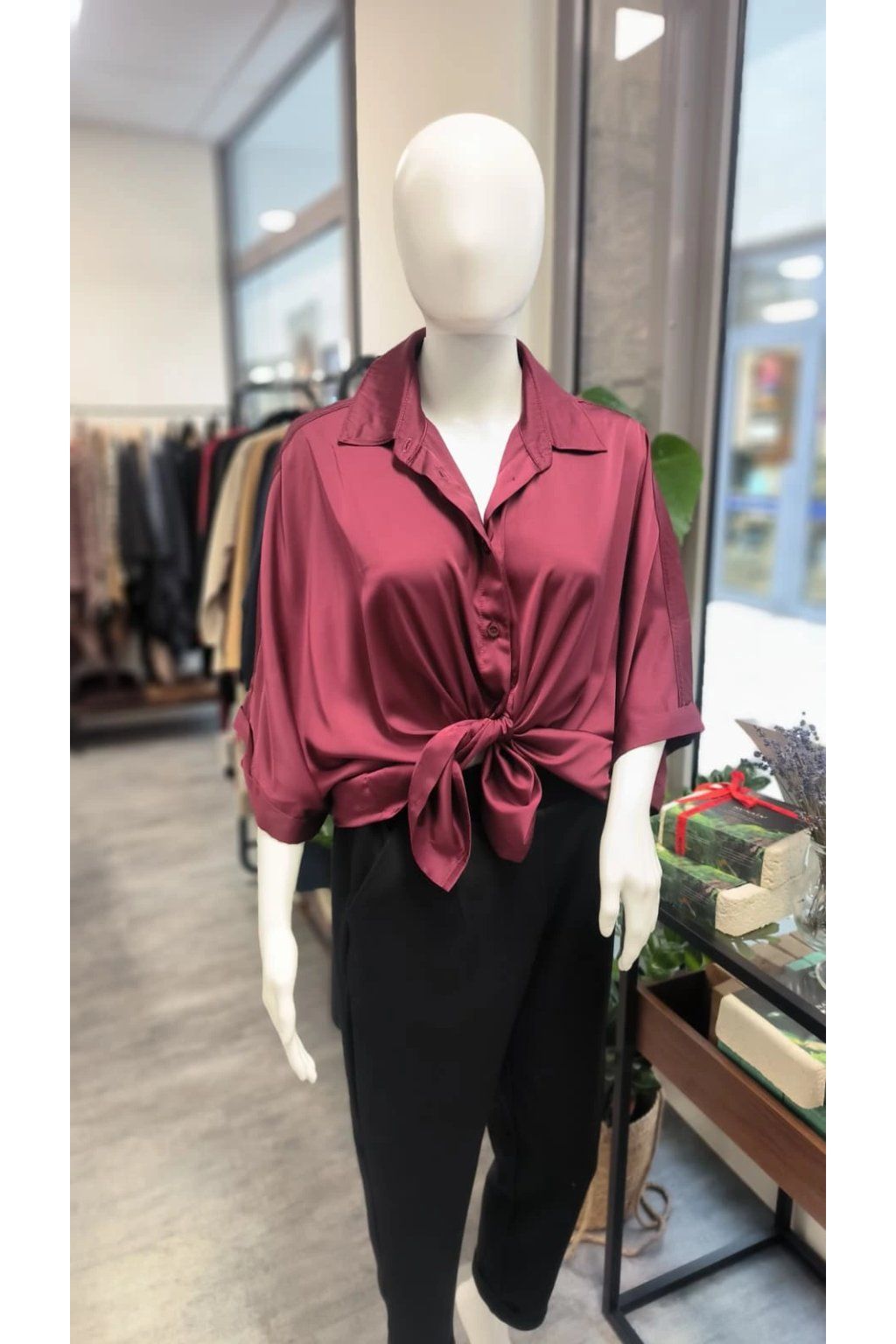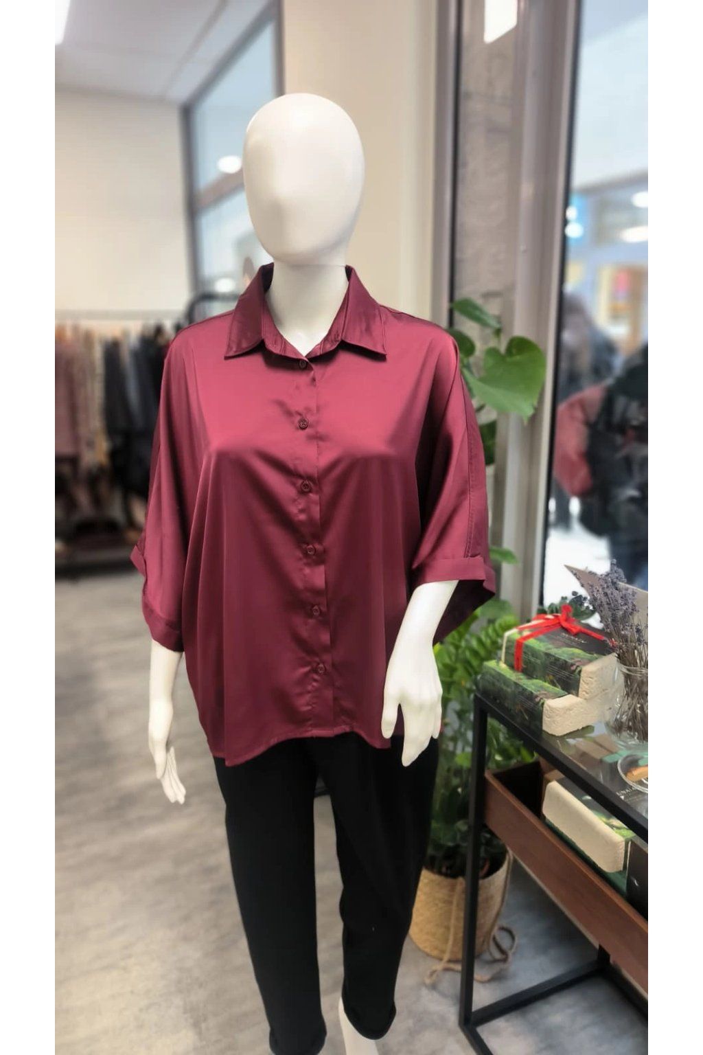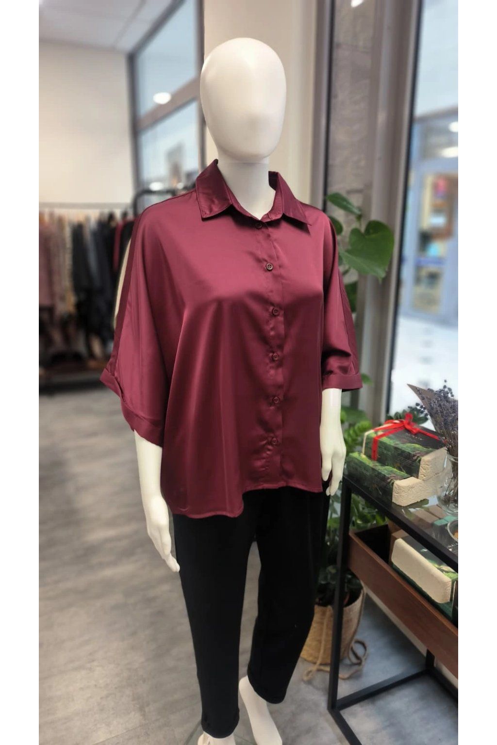 Halenka Fresh Silk Burgundy Saténová halenka na knoflíčky
