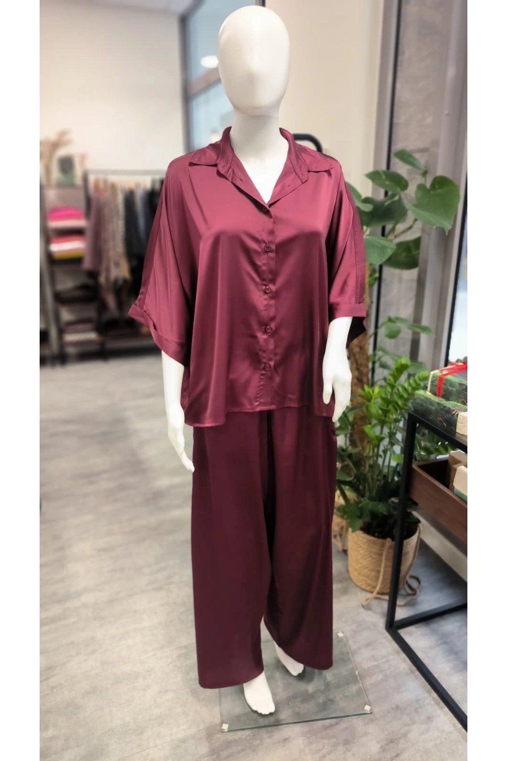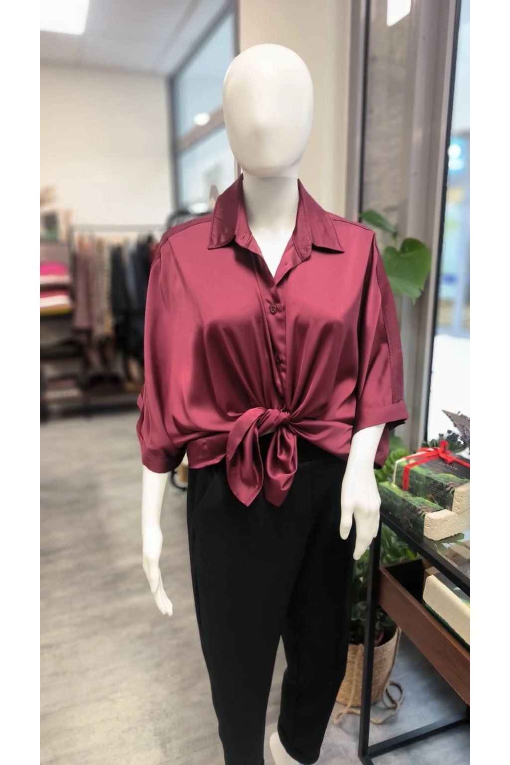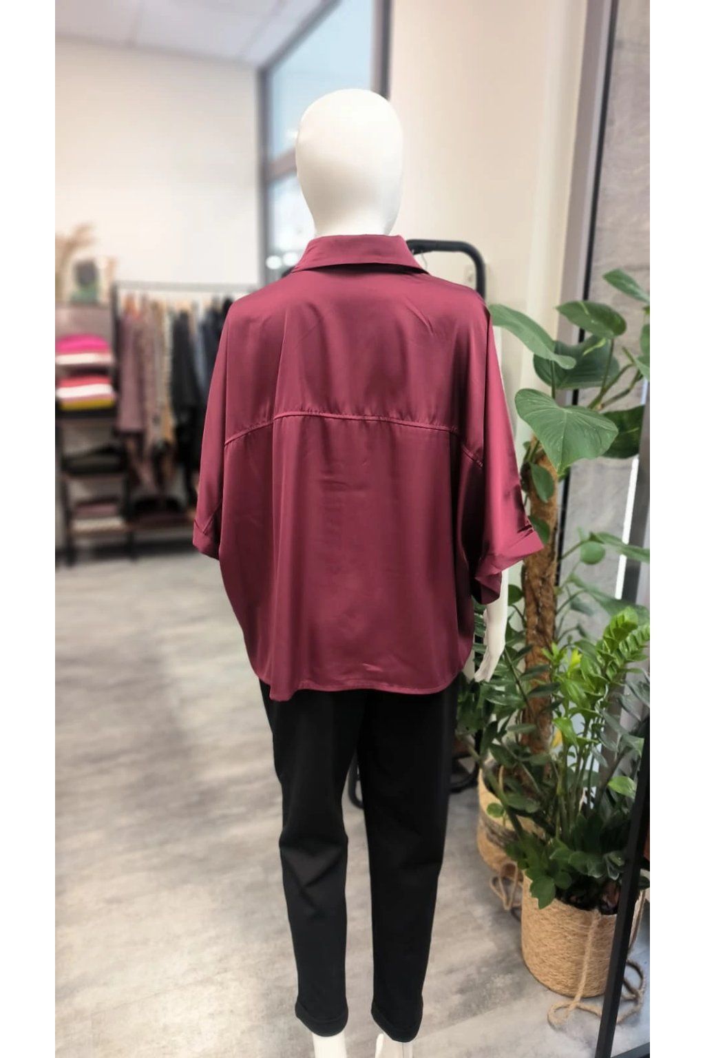 Halenka Fresh Silk Burgundy Saténová halenka na knoflíčky