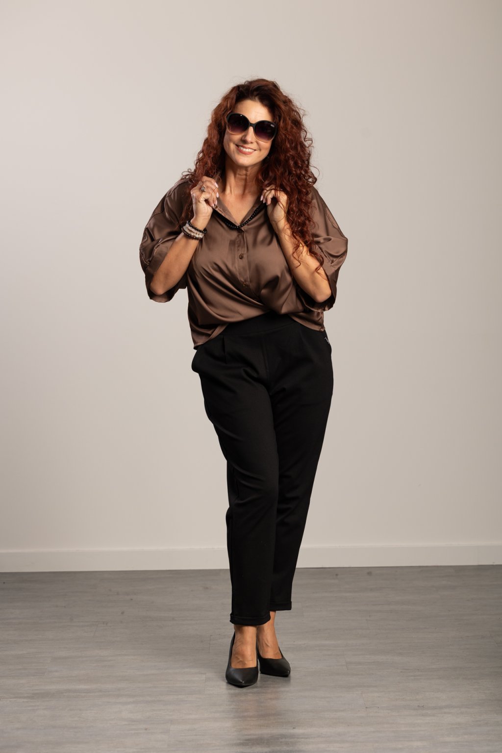 Halenka Fresh Silk Chocolate Saténová halenka na knoflíčky