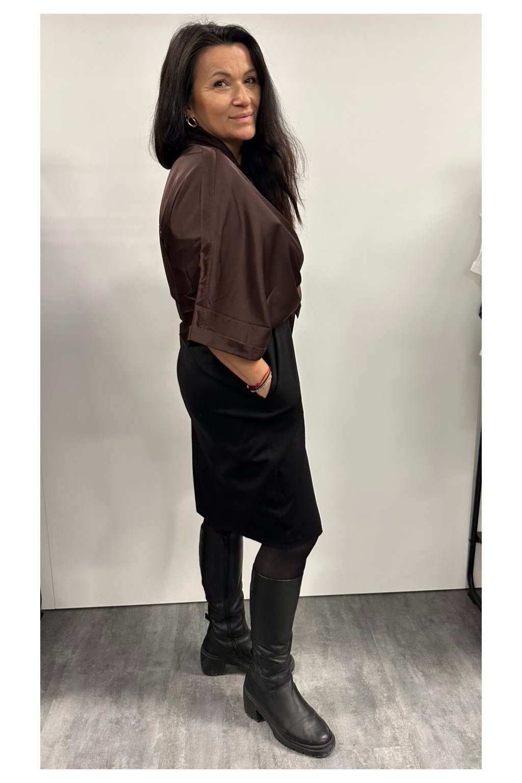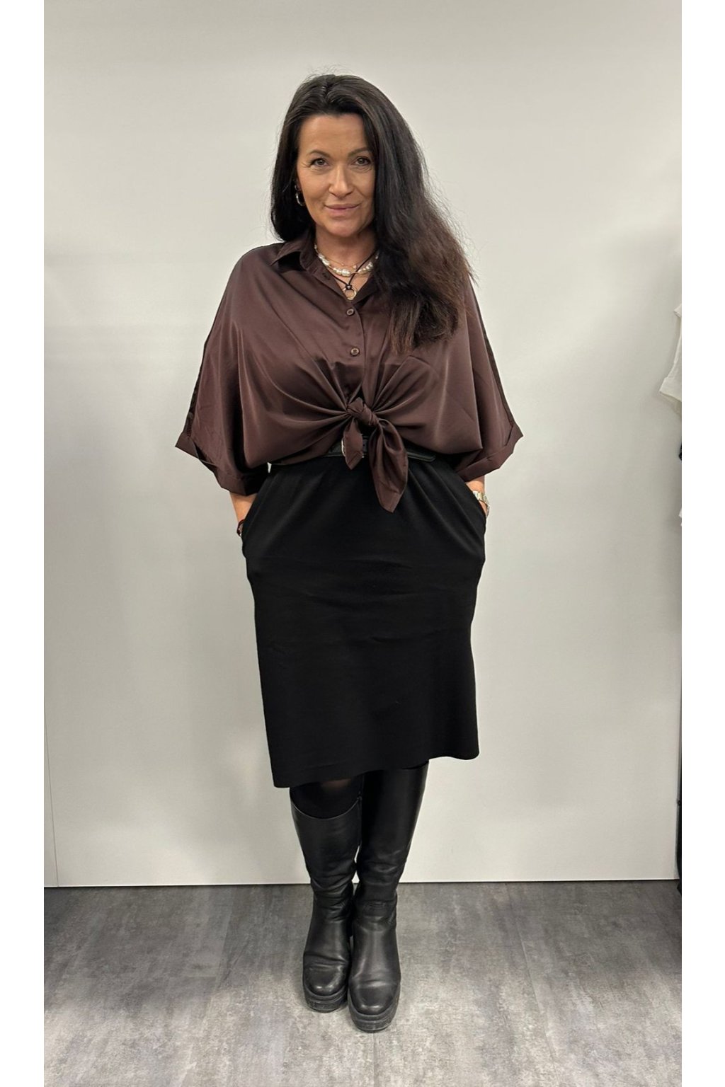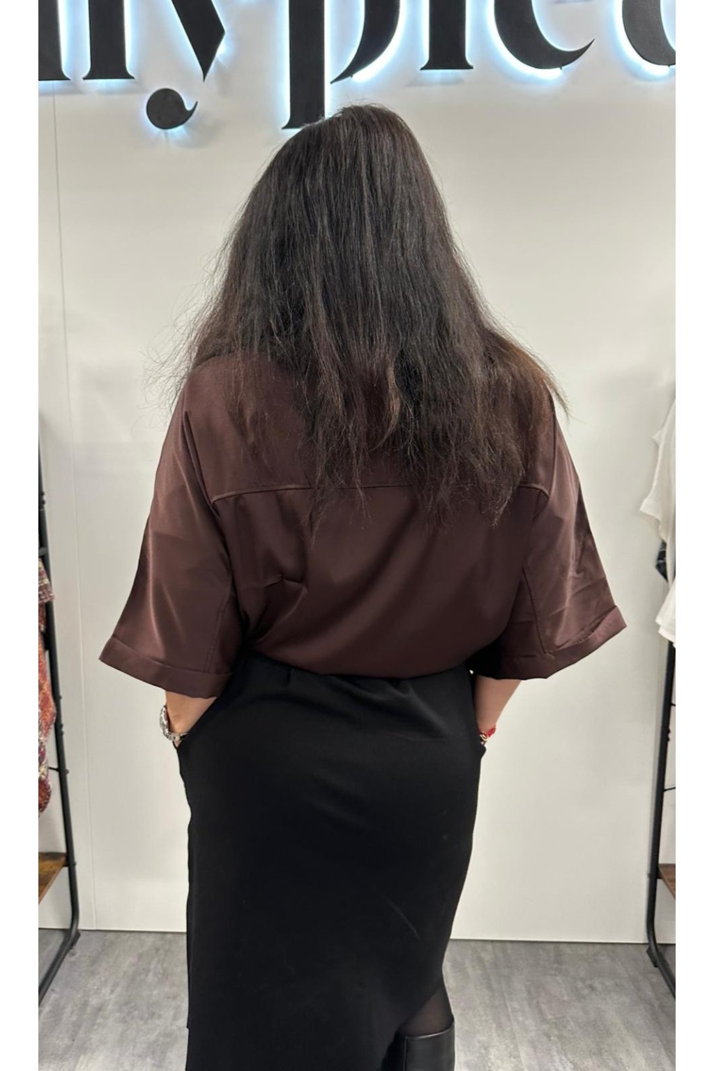 Halenka Fresh Silk Dark Chocolate Saténová halenka na knoflíčky
