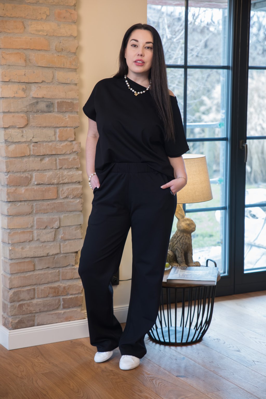 Kalhoty Emma Black Elegantní přizpůsobivé kalhoty s gumou