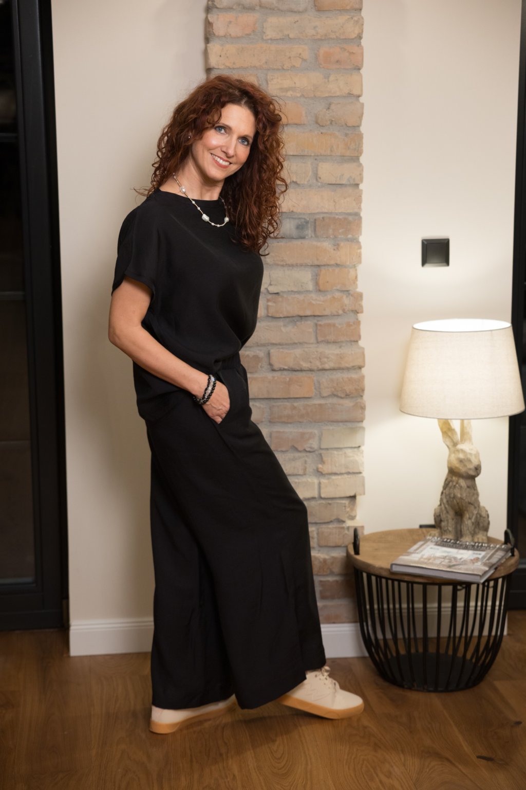 Kalhoty Hanna Black Elegantní volné kalhoty