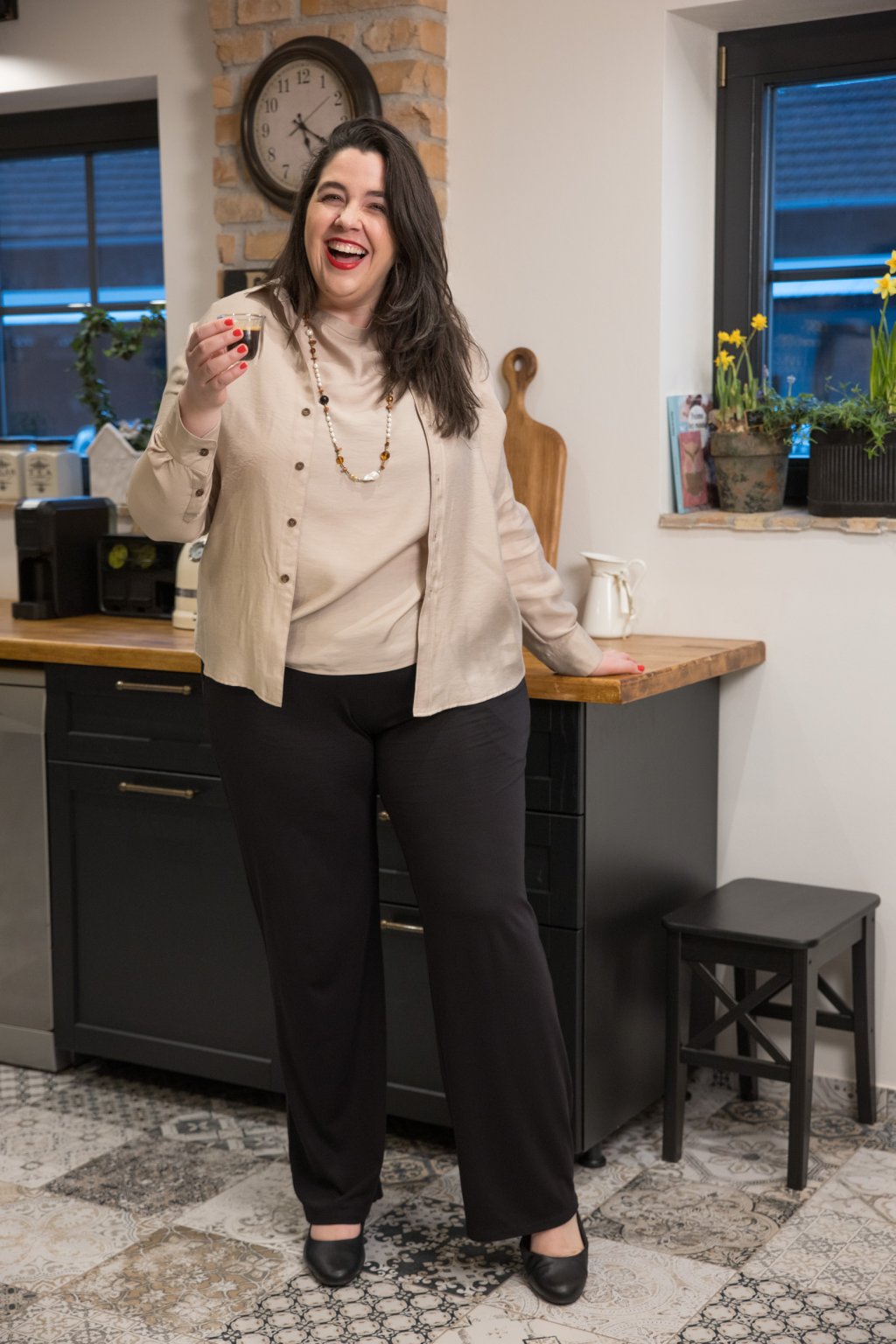 Spodní okraj je jemně zaoblený a na bocích lehce vykrojený, díky čemuž košile přirozeně kopíruje siluetu a lichotí postavě. Můžete ji nosit volně přes kalhoty nebo lehce zastrčenou. Nám se líbí i uvázaná v pase na uzlík.