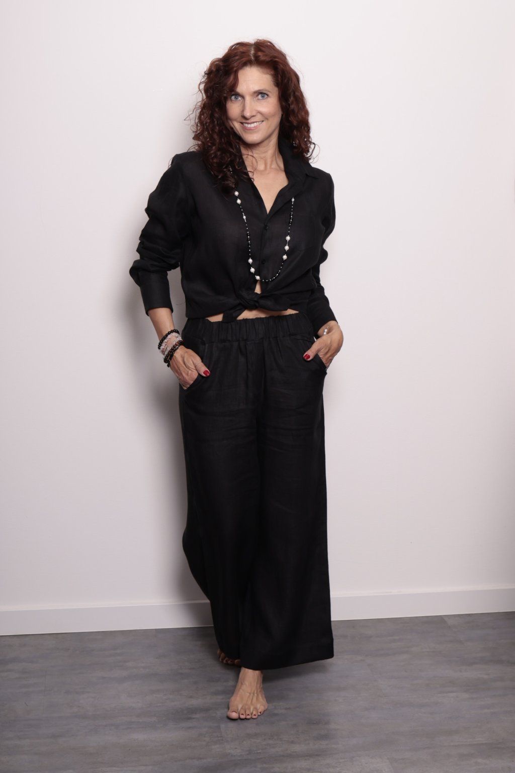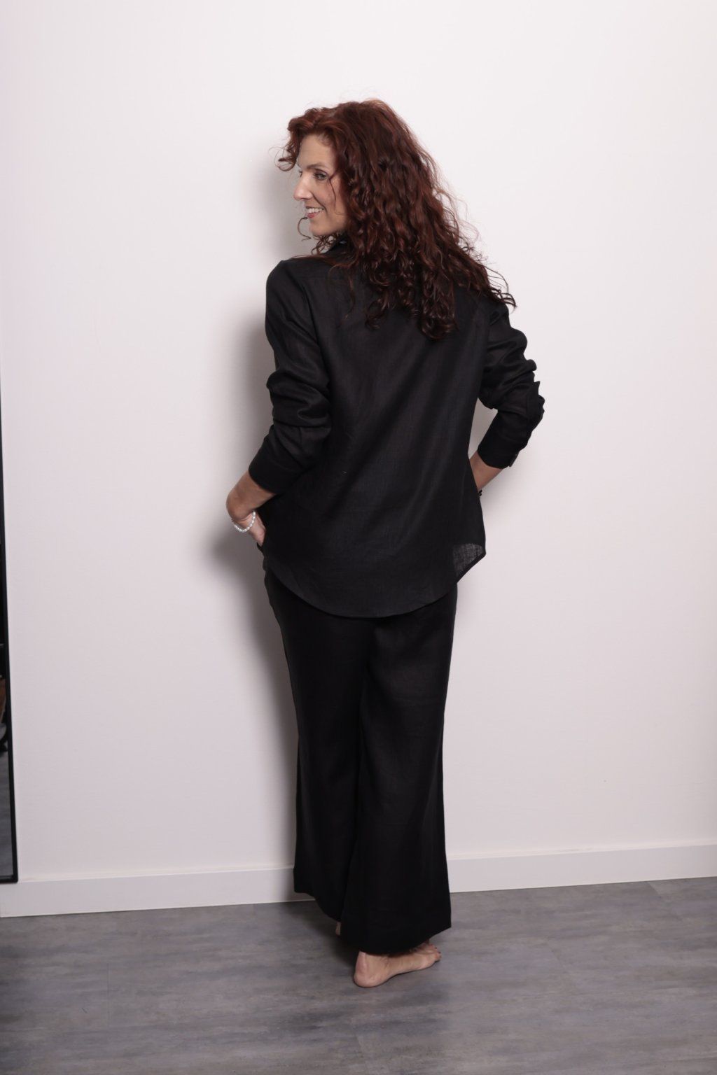 Košile jemně kopíruje siluetu, nikde netlačí a díky lehce zaoblenému spodnímu okraji lichotí postavě. Len jí dodává přirozenou strukturu a nenucenou eleganci.Můžete ji nosit volně, zastrčenou nebo uvázanou v pase – pokaždé bude působit jinak.