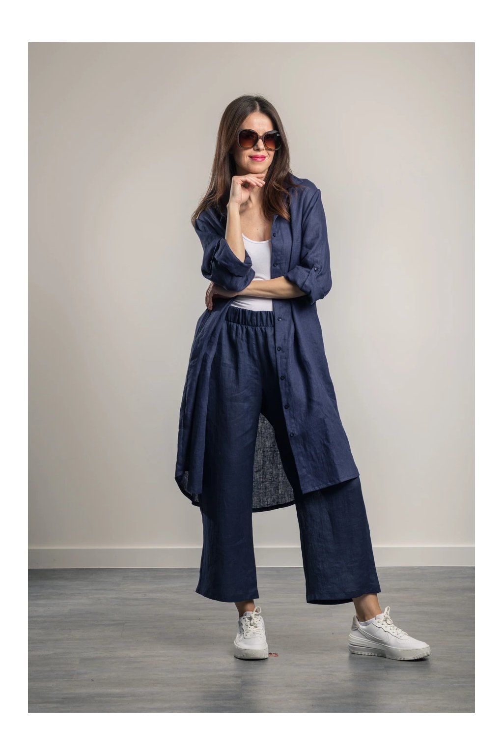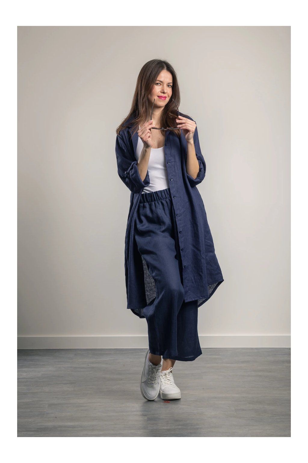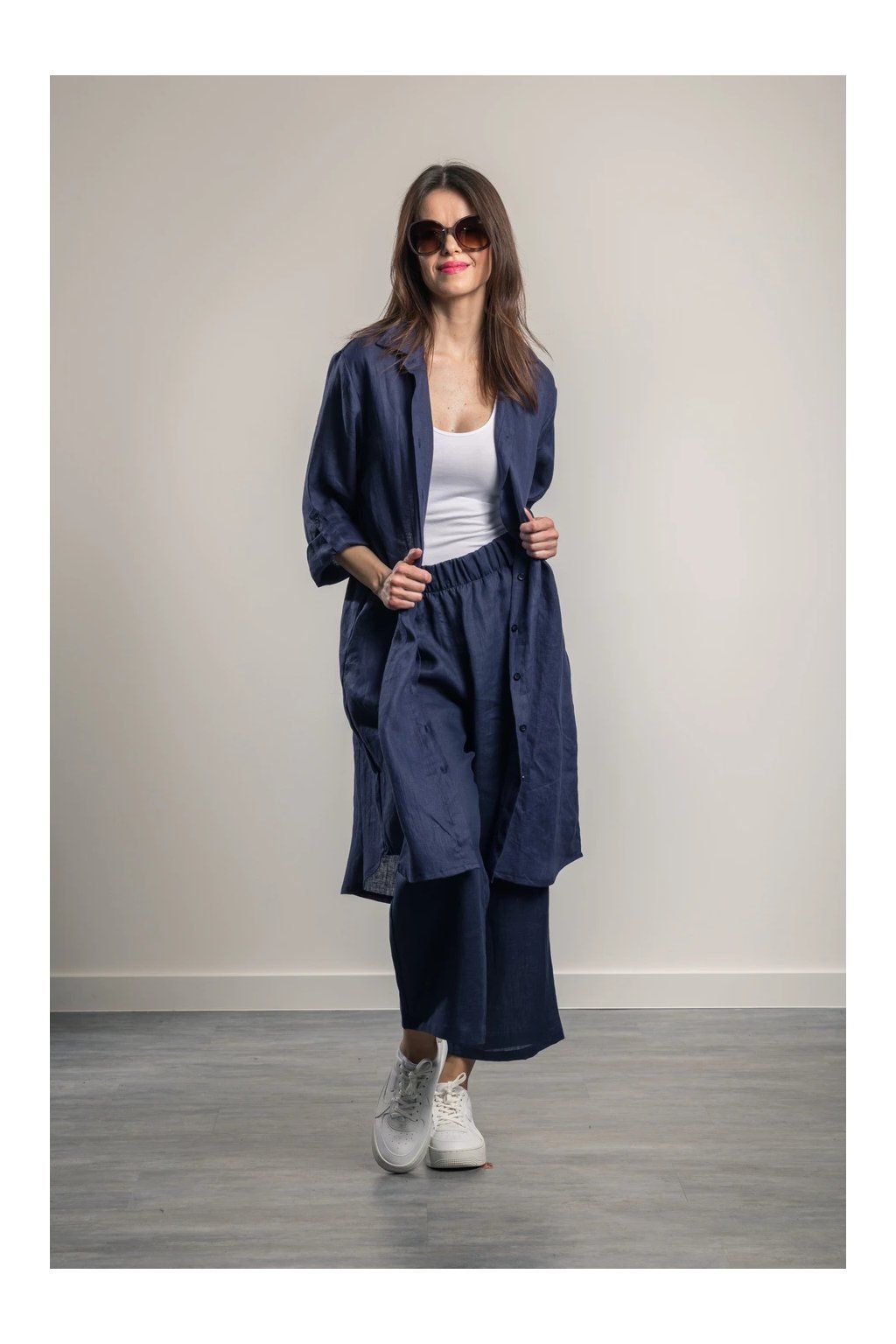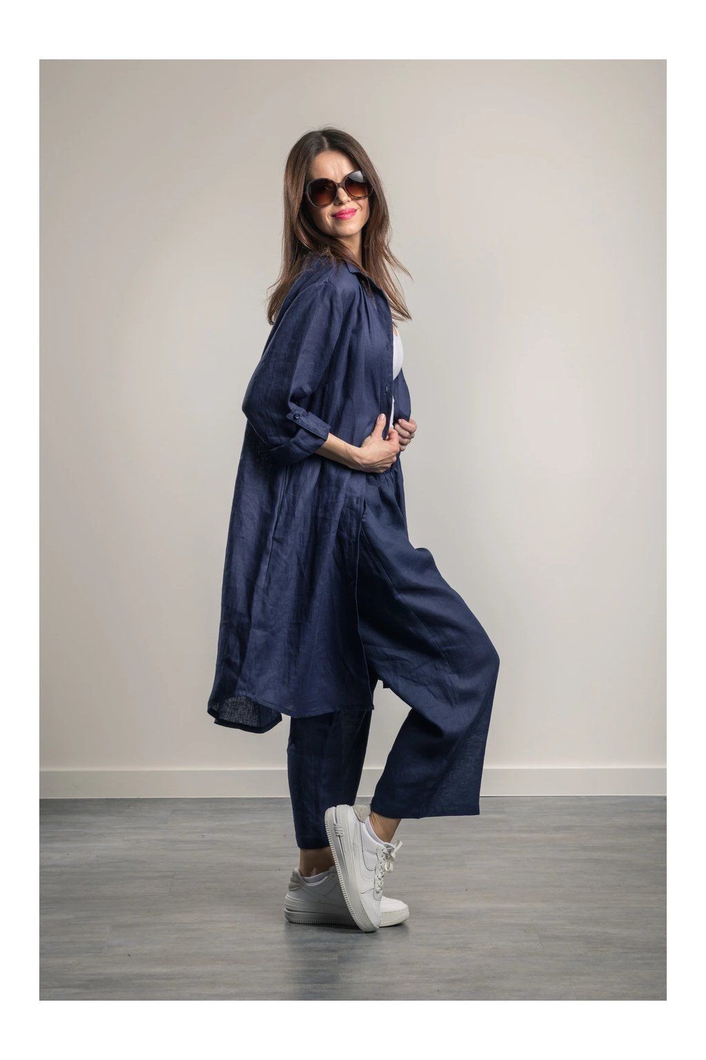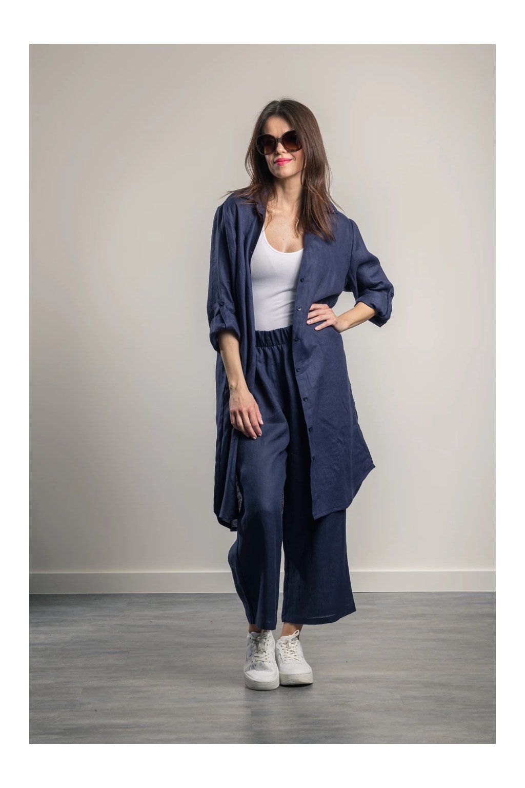 Lněná košile Romy Navy Blue Maxi košile z jemného lnu