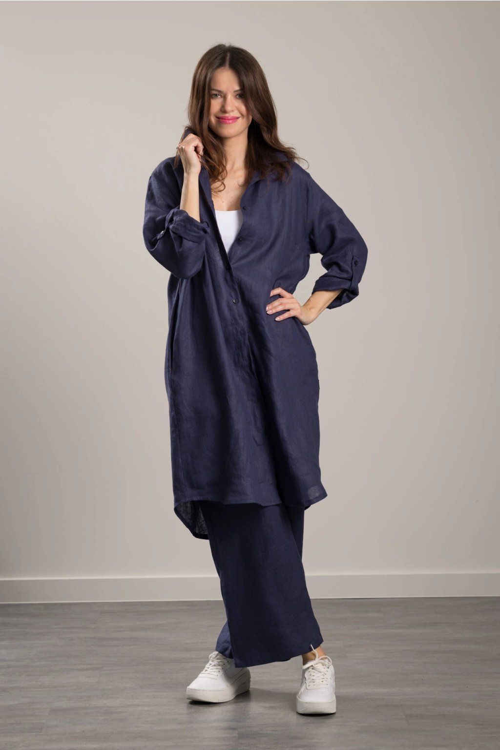 Lněné kalhoty Romy Navy Blue Maxi košile z jemného lnu