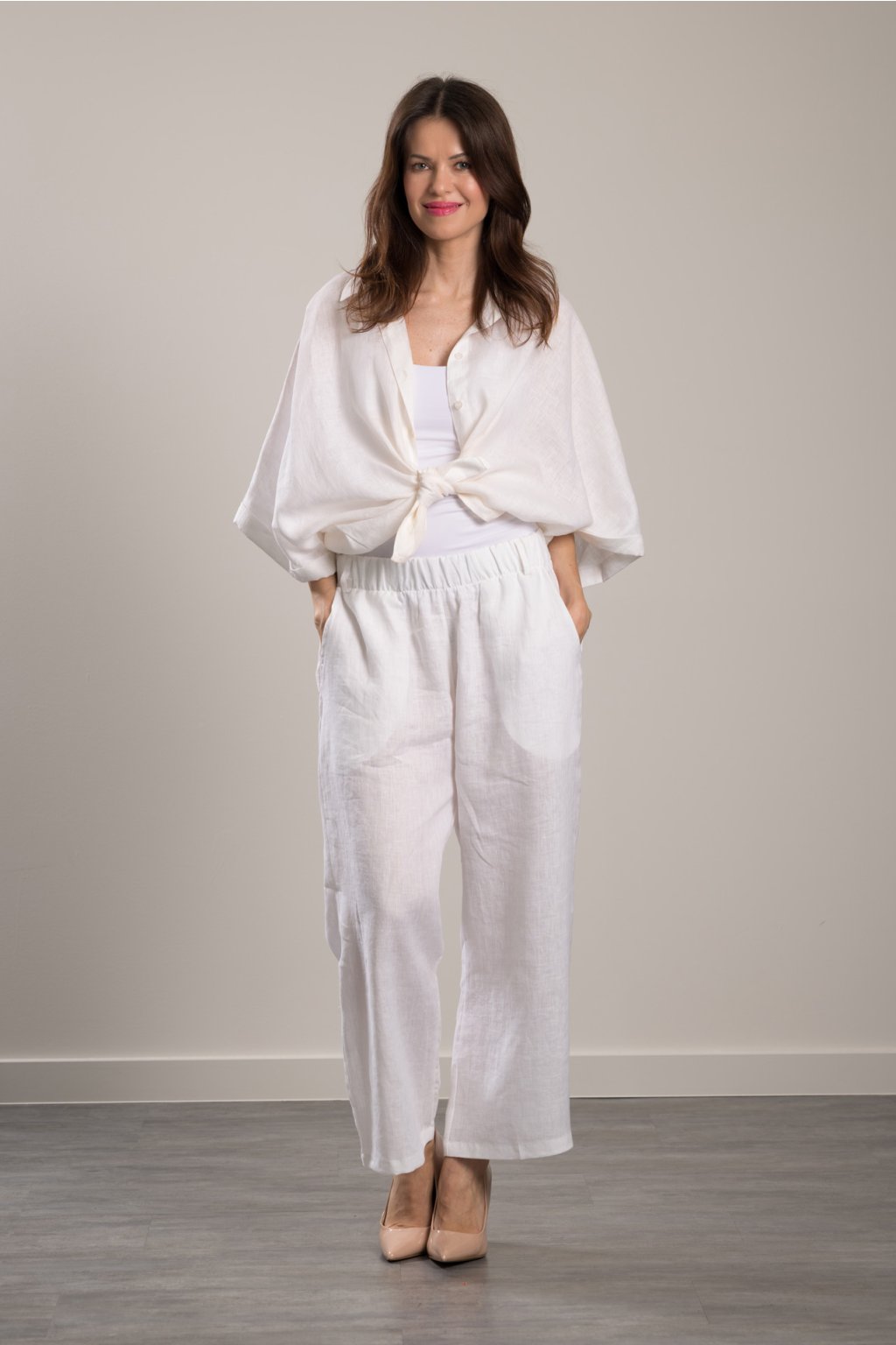 Lněné kalhoty Romy White Maxi košile z jemného lnu