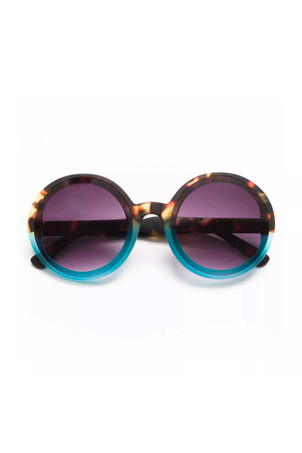 MONICA Havana/blue Kulaté vintage sluneční brýle