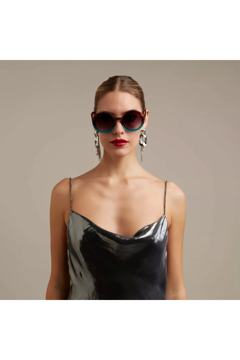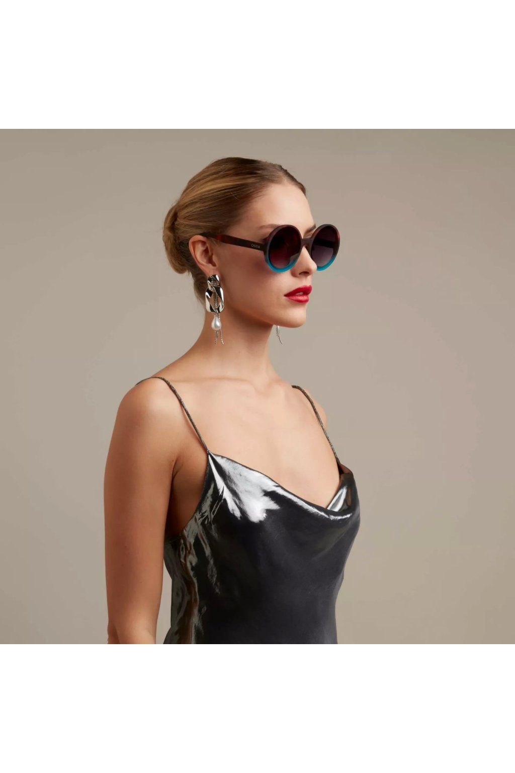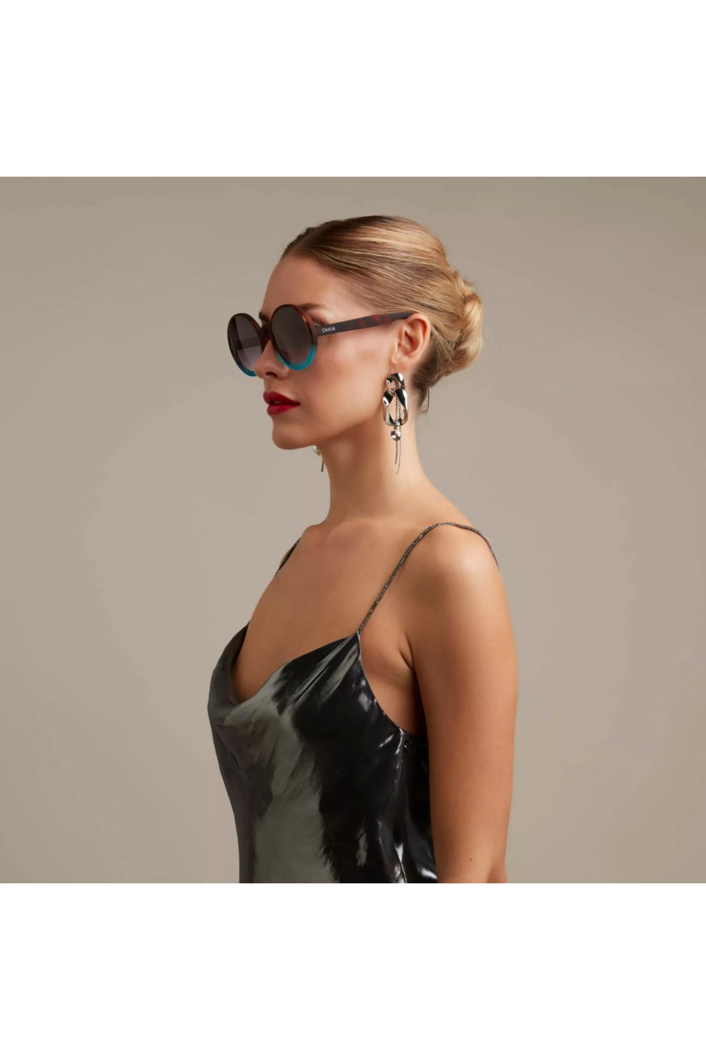 Vintage a moderní! Jen ony to dokáží být. XXL rámeček, soft touch povrch, přechodové čočky s charakteristickými úpravami Okkia. Sluneční brýle Monica jsou stálou nadčasovou klasikou. XXL rámeček a větší přechodové čočky. Ideální pro lidi, kteří chtějí být vidět. Barva obrouček Havana/modrá, čočky černé přechodové